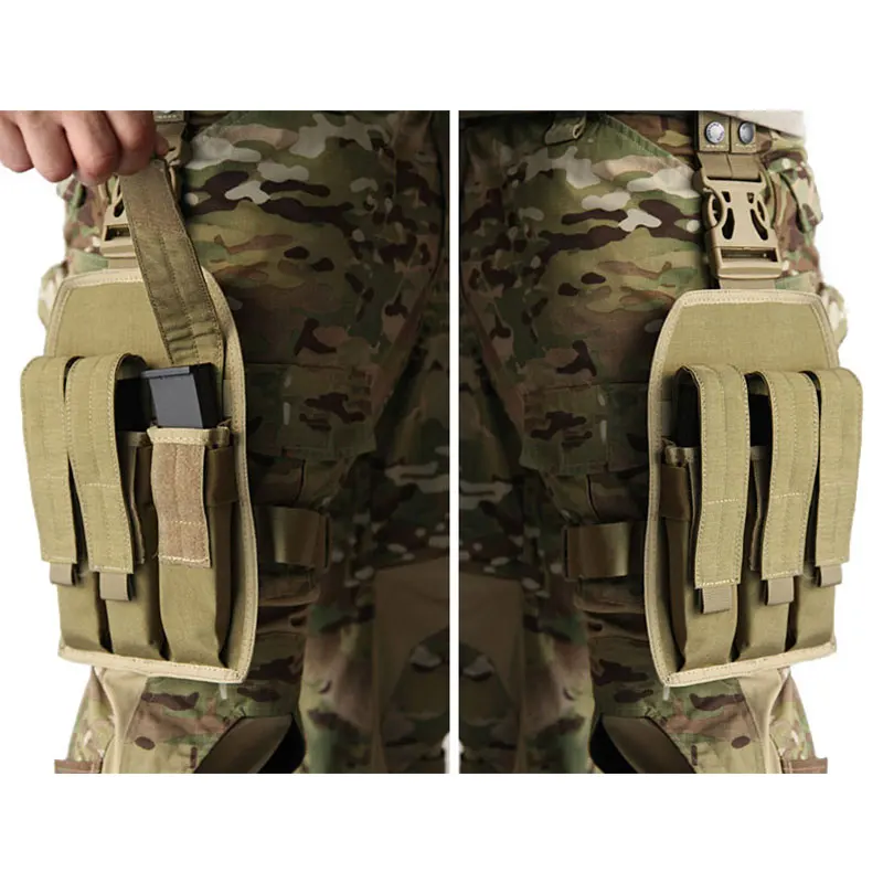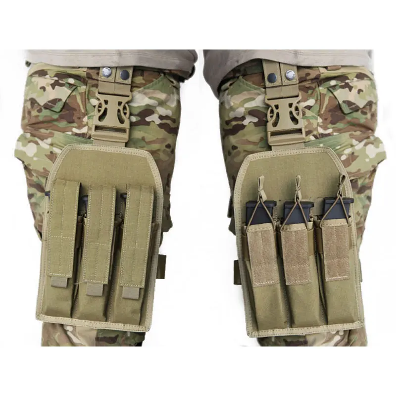 Emersongear MP7 Triple Leg Mag Pouch Tactical Thigh Magazine Bag Hunting Buckle Clip Emerson Holder Carrier For MP5 / KRISS