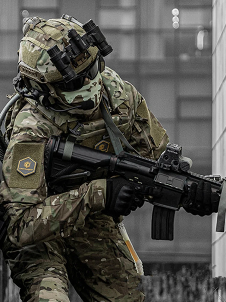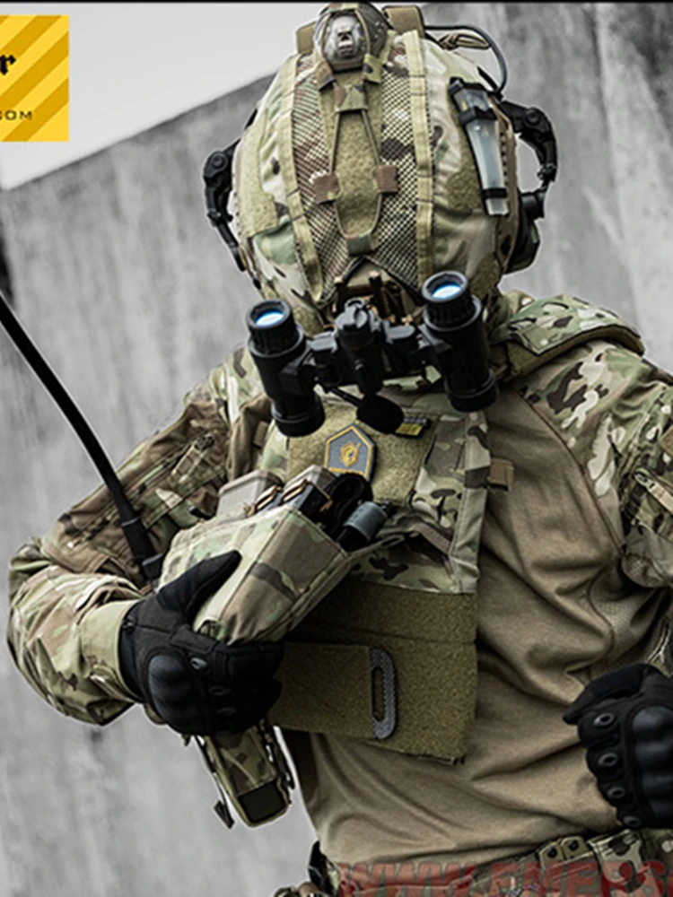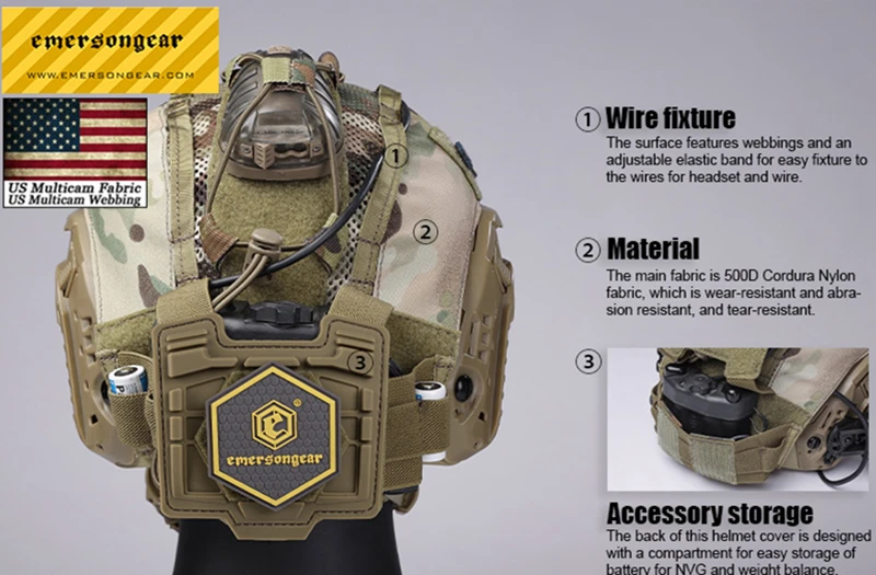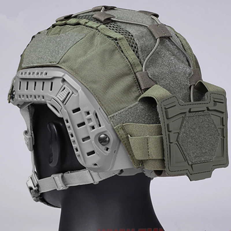 La parte posterior de esta funda para casco está diseñada con un compartimento para guardar fácilmente la batería para NVG y equilibrar el peso.La superficie presenta un diseño y una banda elástica ajustable para una fácil fijación a los cables de los auriculares y NVG.La funda del casco está diseñada para cambiar el color original del casco y proteger el casco y proporcionar una mejor ocultación.