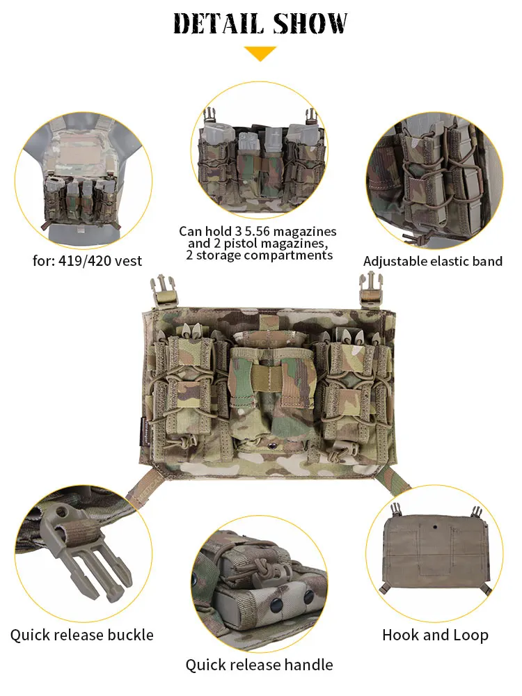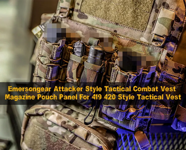EmersonGear Attacker Panel para chaleco 419 420 está especialmente diseñado para chalecos tácticos 419 y 420.El panel tiene capacidad para 3 cargadores de 5,56 y 2 cargadores de pistola, justo al frente