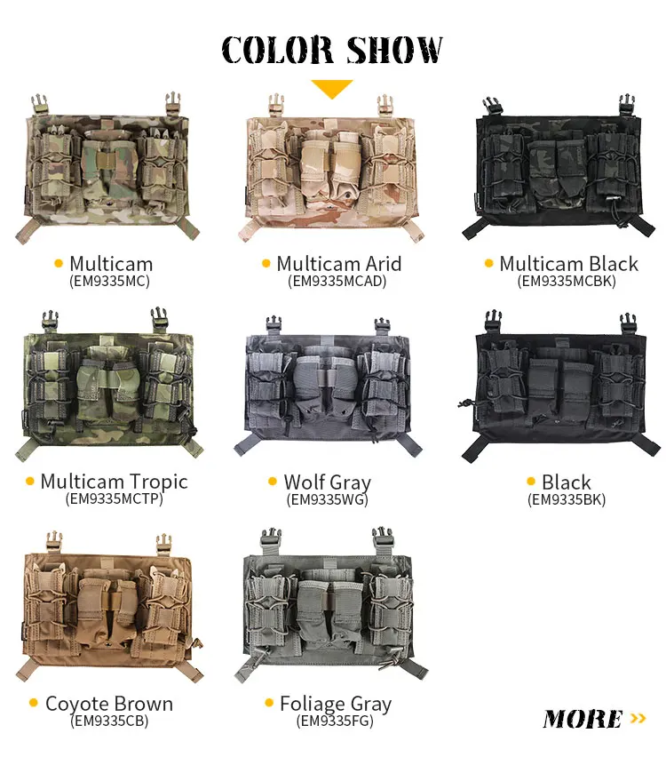 Panel de acoplamiento táctico Emersongear para 419420, portador de placa de chaleco táctico 5,56, Panel de bolsa de pistola, equipo de combate de entrenamiento de caza EM9335