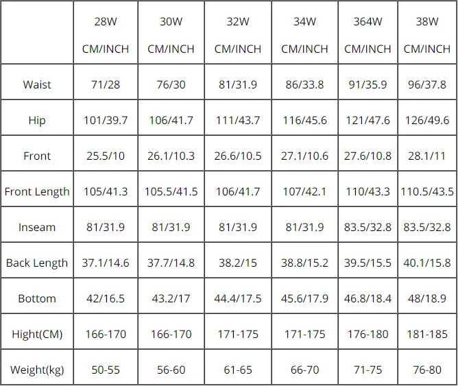 Tamaño: 28W / 30W / 32W / 34W / 36W / 38W