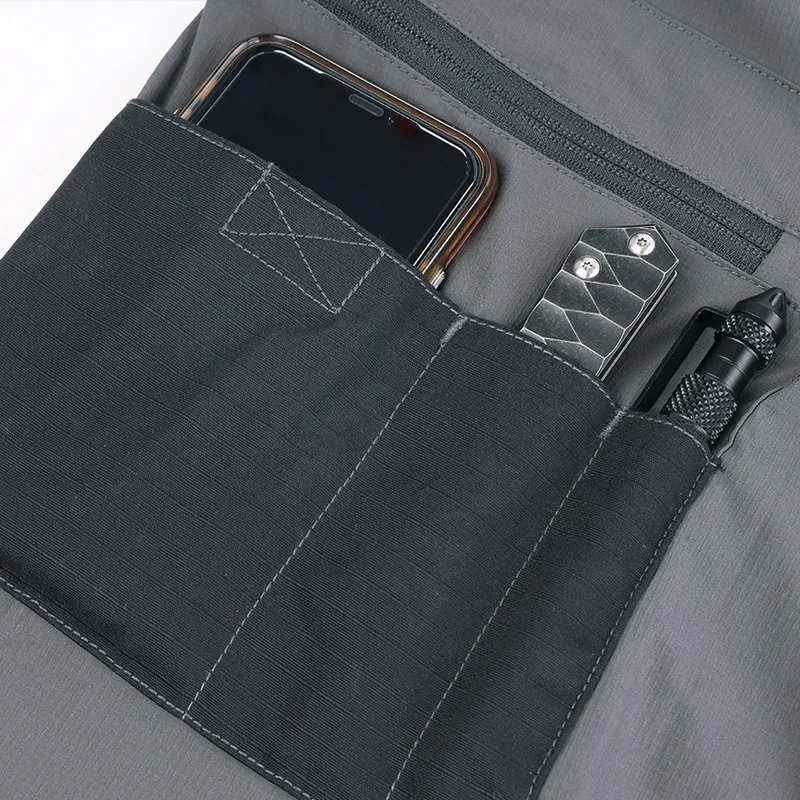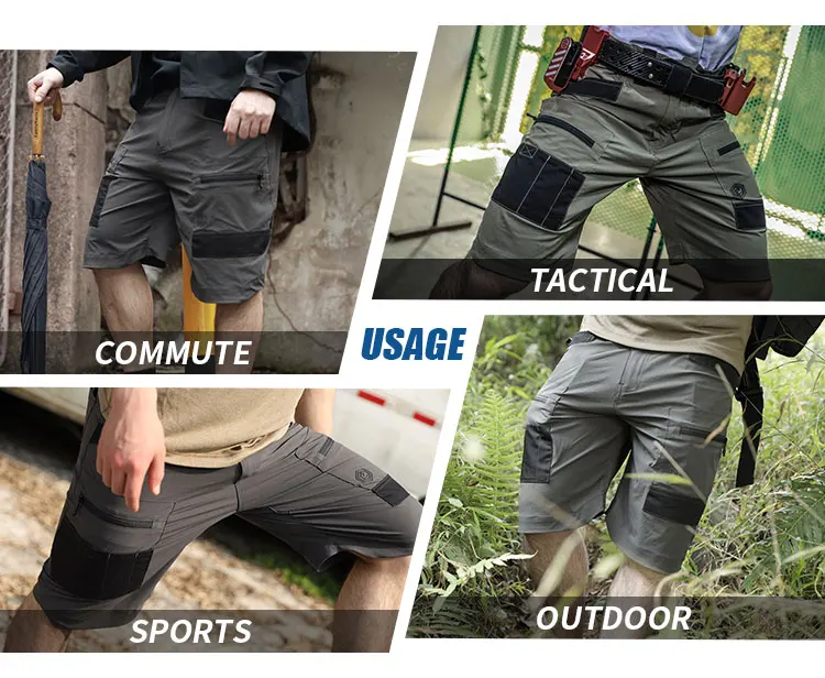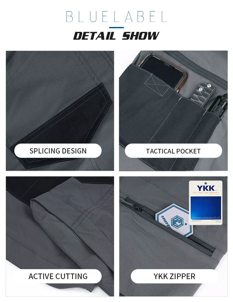 3. Diseño multibolsillo y multibolsillo (dos bolsillos laterales + dos bolsillos de parche con cremallera + dos correas traseras, tres bolsillos en el exterior del bolsillo de parche del muslo derecho para fijar herramientas) para cumplir con la capacidad de viaje diario.