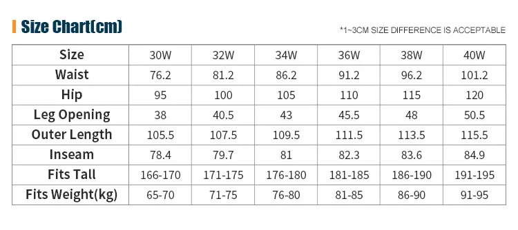 Tamaño: 30W/32W/34W/36W/38W/40W
