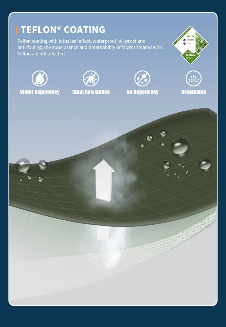 Sin impacto en la transpirabilidad: la apariencia, la sensación en la mano y la transpirabilidad de los tejidos tratados con teflón no se ven afectados.