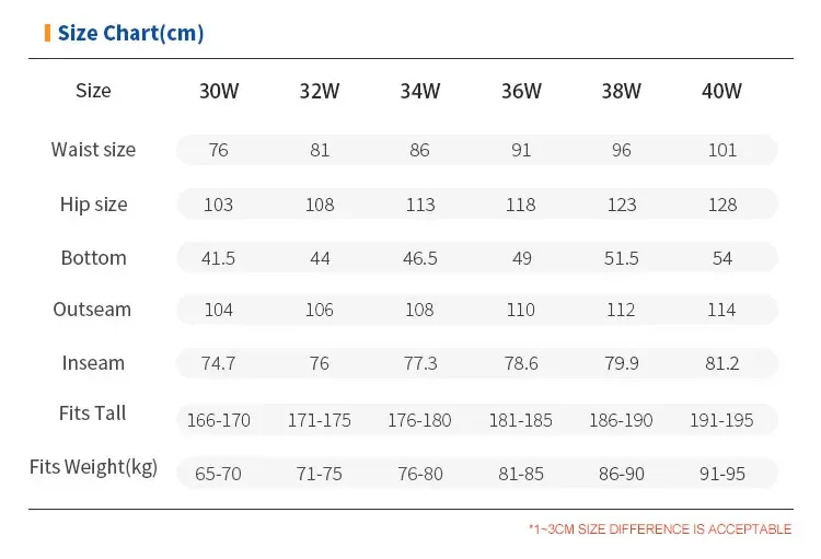 Tamaño: 30W/32W/34W/36W/38W/40W
