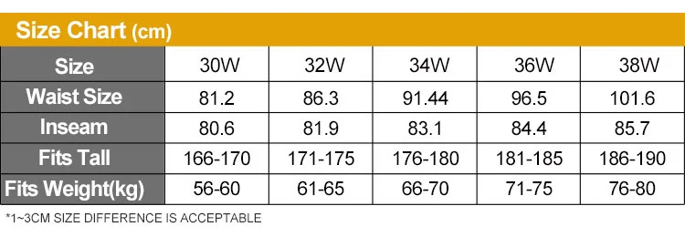 Tamaño: 30W / 32W / 34W / 36W / 38W