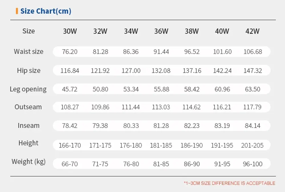 Tamaño: 30W/32W/34W/36W/38W/40W/42W