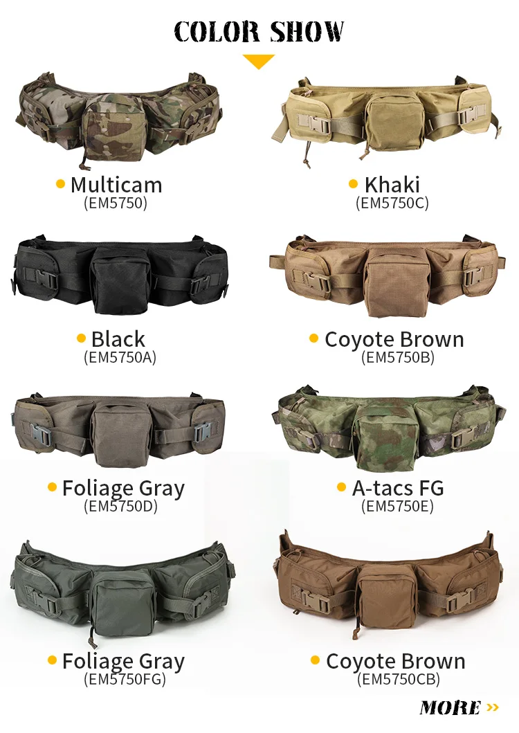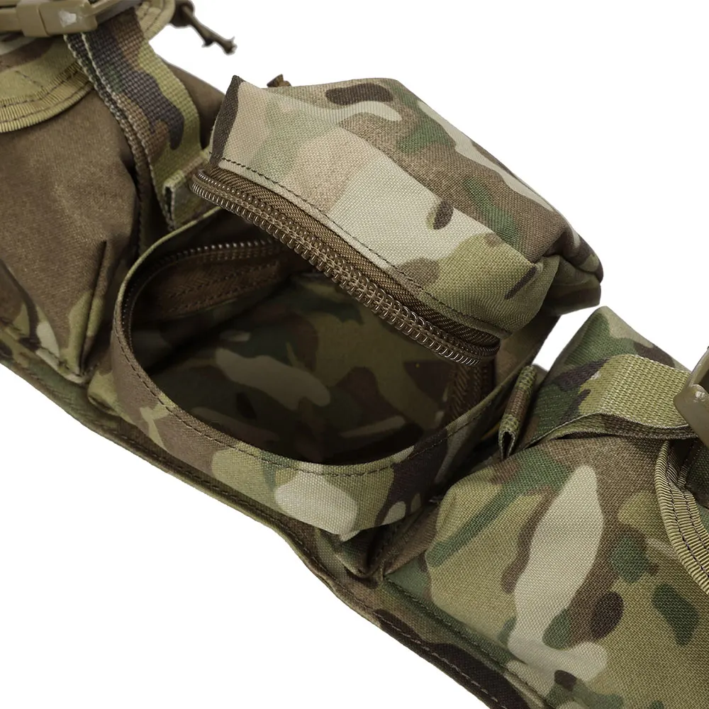 El paquete de cintura EmersonGear Sniper está hecho de tela 500D / 1000D, que tiene las características de resistencia a la abrasión, repelencia al agua, resistencia al aceite y a la suciedad.Cuatro bolsas de accesorios horizontales de diferentes tamaños están unidas al cuerpo del sello de la cintura, lo que es muy adecuado para transportar accesorios tácticos pesados y equipos de francotirador.Después de la compra, los usuarios pueden evitar el consumo secundario de bolsas de accesorios a juego y pueden fijarlas directamente en el cinturón táctico.