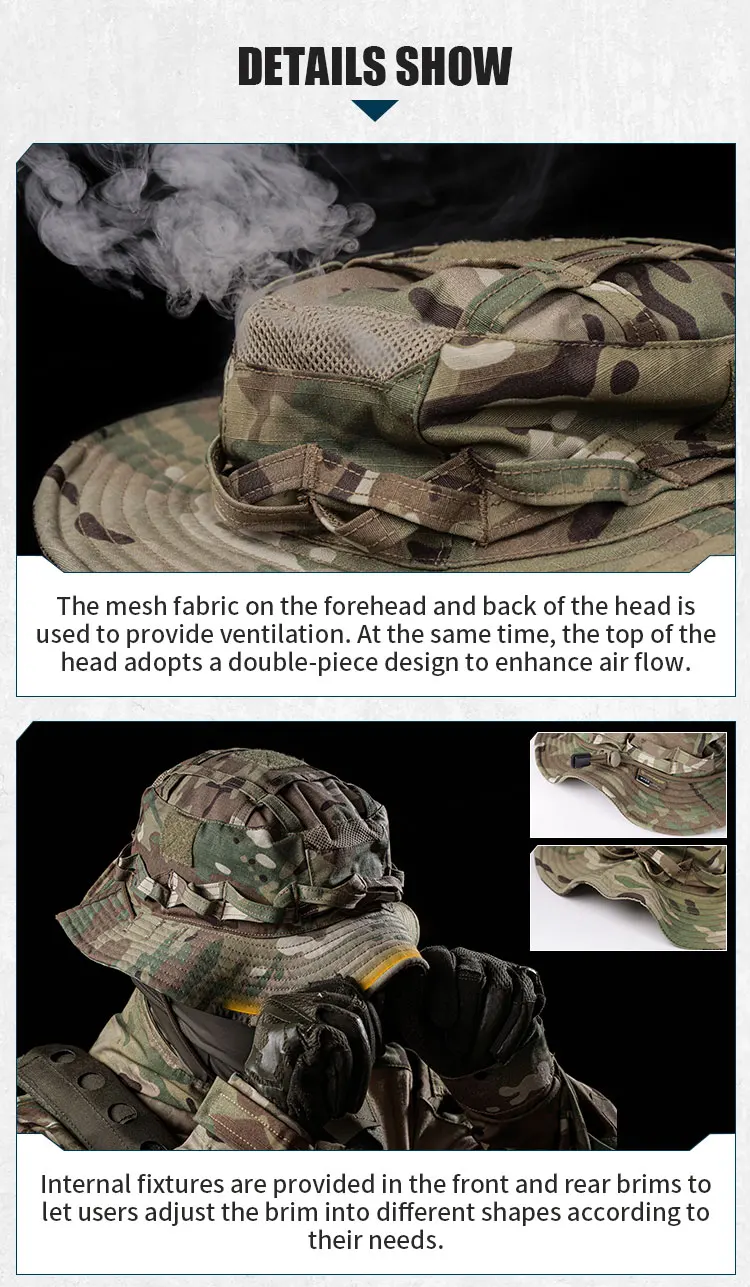 El sombrero táctico Boonie de ala corta transpirable Emersongear Rock Lizard cuenta con una ala corta de 5 cm que no bloquea la visión de los usuarios, lo que lo hace adecuado tanto para tácticas como para actividades al aire libre.La tela de malla en la frente y la parte posterior de la cabeza se utiliza para proporcionar ventilación.Al mismo tiempo, la parte superior de la cabeza adopta un diseño de doble pieza para mejorar el flujo de aire.
