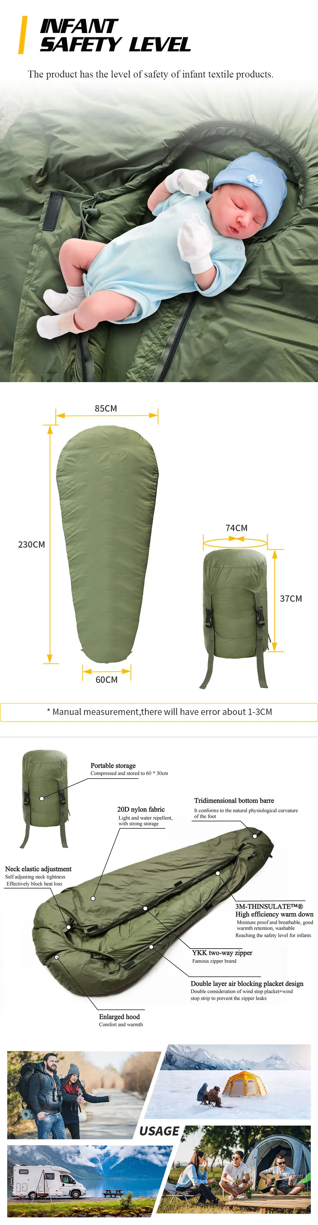 Emersongear Blue Label Tactical Cold Peak Saco de dormir polar de nylon para acampar Senderismo Caza Deporte de viaje al aire libre EMB9607