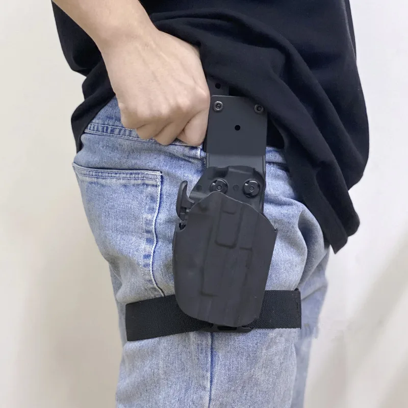 Descripción: la asistencia del adaptador de correa para pierna tiene un adaptador triangular que se estrecha hasta un solo punto de pivote, emparejado con un tornillo cruzado para Organizar con el orificio del tornillo inferior del sistema de montaje. El adaptador está asegurado al sistema pobre de la funda mediante un solo manguito de aluminio a través del orificio del tornillo inferior existente. El adaptador de correa para la pierna viene con una banda para la pierna de 1,5 pulgadas con bandas tejidas elásticas textiles de goma, mejoradas al aumentar la seguridad de una sola banda para la pierna de ciclismo alta que se mantiene fija independientemente de la posición de la pierna.