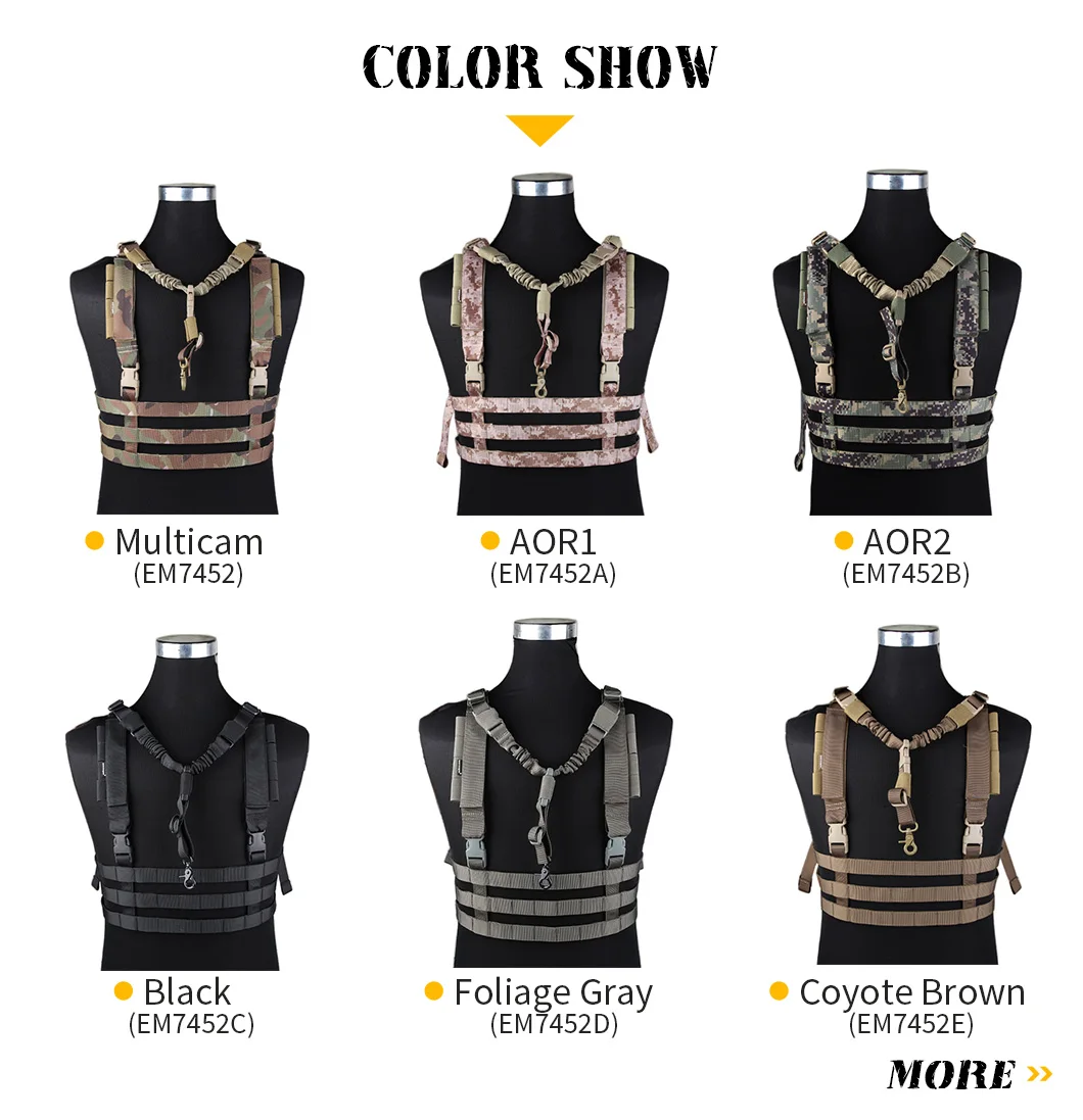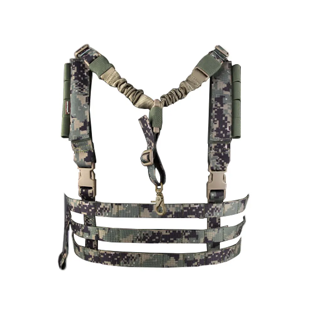 El aparejo de pecho de perfil bajo del sistema EmersonGear MOLLE está hecho de correas completas, lo que hace que el producto tenga las características de carga máxima y peso propio más liviano.EmersonGear MOLLE System Plataforma de pecho de perfil bajo con cinturón de pistola de un solo punto y hombrera engrosada.El cuerpo para colgar en el pecho se compone de tres líneas de correas, suficientes para fijar bolsas de accesorios de diferentes tamaños y formas.