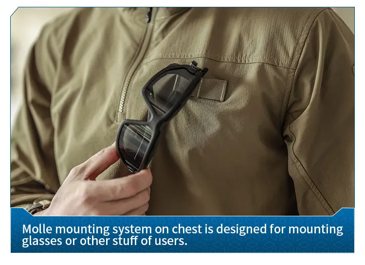 5. El sistema de montaje Molle en el pecho está diseñado para montar gafas u otras cosas de los usuarios.