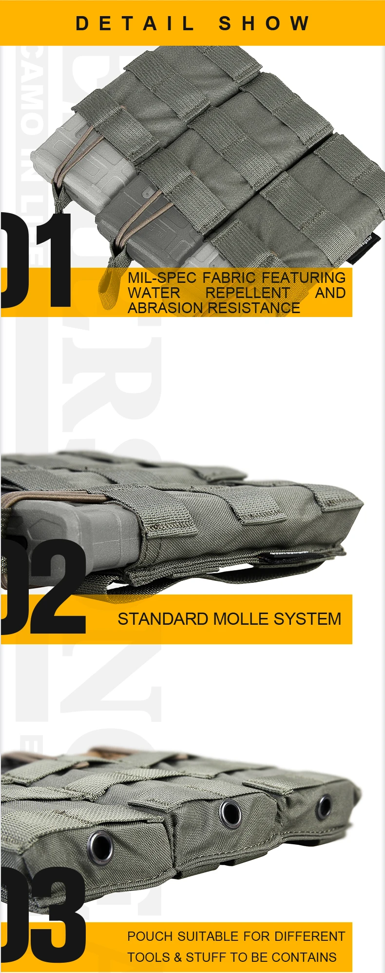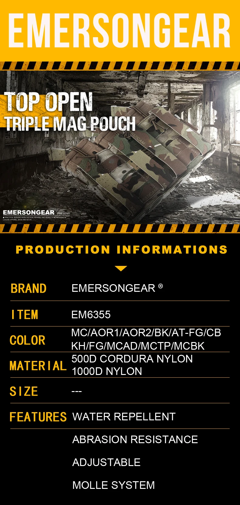 El paquete incluye: 1 bolsa táctica modular Triple abierta para revistas Emersongear