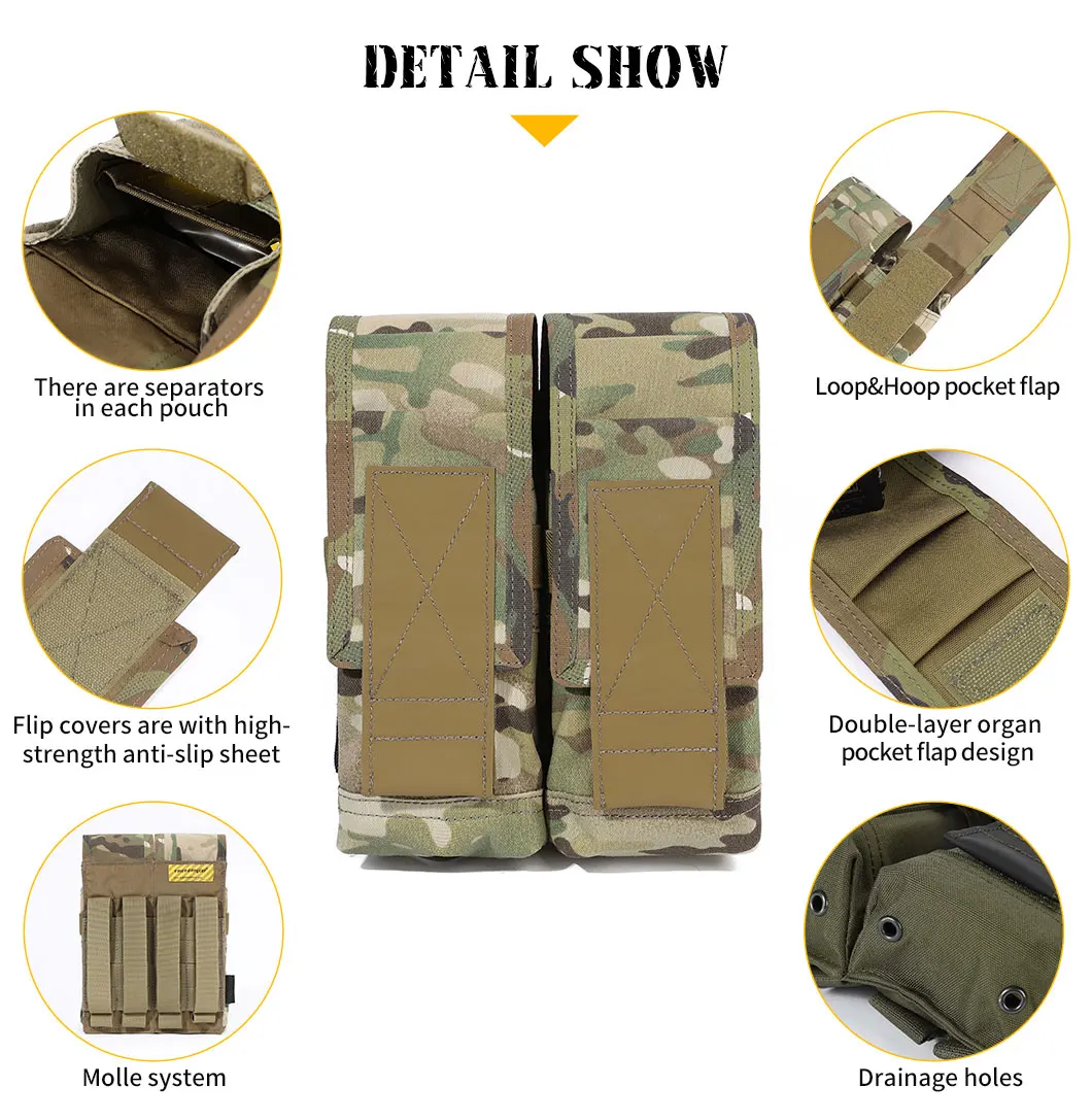 2.Diseño: El cargador cuenta con placas divisorias internas que resuelven eficazmente el problema de la fricción mutua al alojar el cargador.Hay un orificio de drenaje en la parte inferior para evitar que el producto retenga agua después de pasar.La cubierta tiene un diseño de órgano de doble capa y aún puede mantener una cobertura de flexión natural cuando se coloca una o dos (completamente cargada).La cubierta está empalmada con láminas antideslizantes de TPU de alta resistencia, lo que hace que su operación sea más conveniente después de usar guantes.