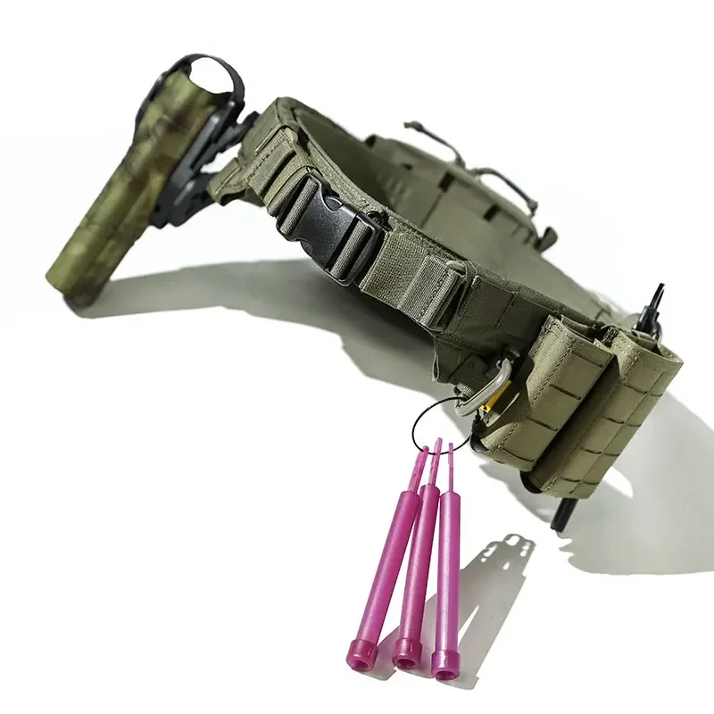 Este cinturón adopta un diseño completamente nuevo.Los usuarios del sistema de doble sujeción del sello de cintura pueden cooperar y dividirlo según sus necesidades personales.El sello exterior de la cintura tiene un espacio enchufable para facilitar el montaje de placas de piernas, fundas y otros equipos de expansión.