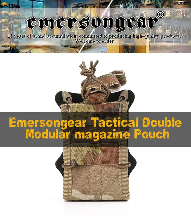 EMERSONGEAR Bolsa para revistas de rifle modular doble Airsoft, utilidad de caza MOLLE Multicam, juego Mag, camuflaje ligero