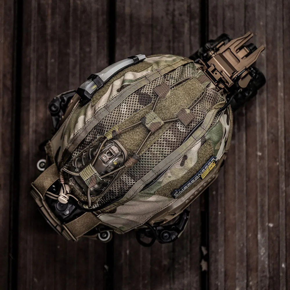 La parte posterior de esta funda para casco está diseñada con un compartimento para guardar fácilmente la batería para NVG y equilibrar el peso.La superficie cuenta con correas y una banda elástica ajustable para una fácil fijación a los cables de los auriculares y NVG.La funda del casco está diseñada para cambiar el color original del casco y proteger el casco y proporcionar una mejor ocultación.