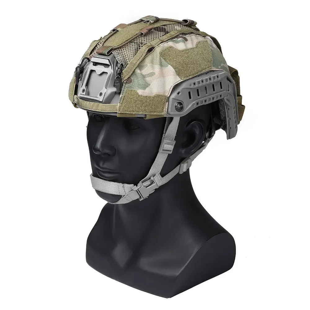 La parte posterior de esta funda para casco está diseñada con un compartimento para guardar fácilmente la batería para NVG y equilibrar el peso.La superficie cuenta con correas y una banda elástica ajustable para una fácil fijación a los cables de los auriculares y NVG.La funda del casco está diseñada para cambiar el color original del casco y proteger el casco y proporcionar una mejor ocultación.