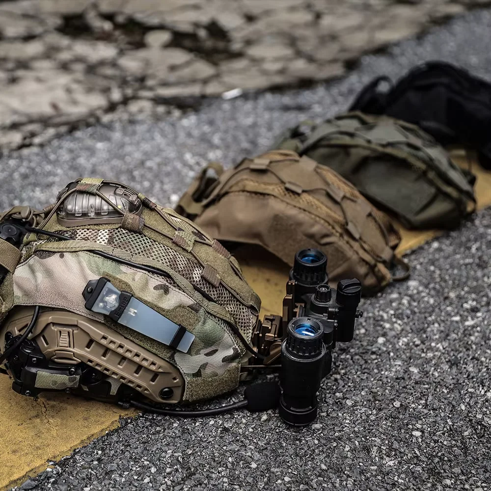 La parte posterior de esta funda para casco está diseñada con un compartimento para guardar fácilmente la batería para NVG y equilibrar el peso.La superficie cuenta con correas y una banda elástica ajustable para una fácil fijación a los cables de los auriculares y NVG.La funda del casco está diseñada para cambiar el color original del casco y proteger el casco y proporcionar una mejor ocultación.