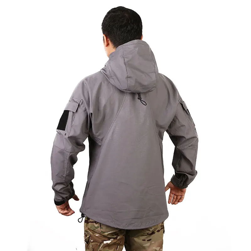Detail: 1.Made for Teflon coating marterials,which have function:waterproof,oil-proof,anti-fouling, abrasion-proof, scratch-proof, wind-sand-proof, can adapt to various harsh environments. 2.The simple version and waist design can adapt to various body shapes. 3.Easy storage of hat,Elastic adjustment system at the top of the head. 4.The PCU Protective Combat Uniform system is a new strategic advantage for American Special Operations Units (SOF) in the battlefield in cold climates. Among them, Level-5 clothing has functions such as windproof, water repellent and high air permeability, which is used the most in military.