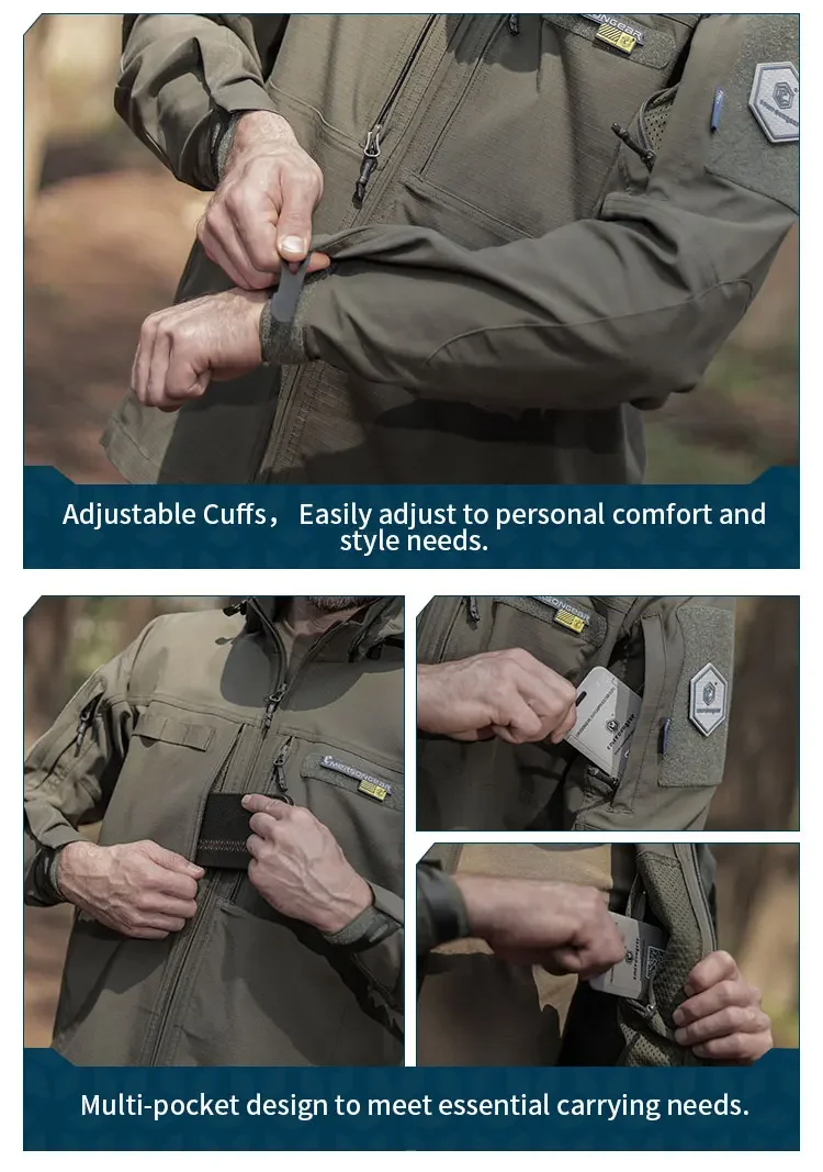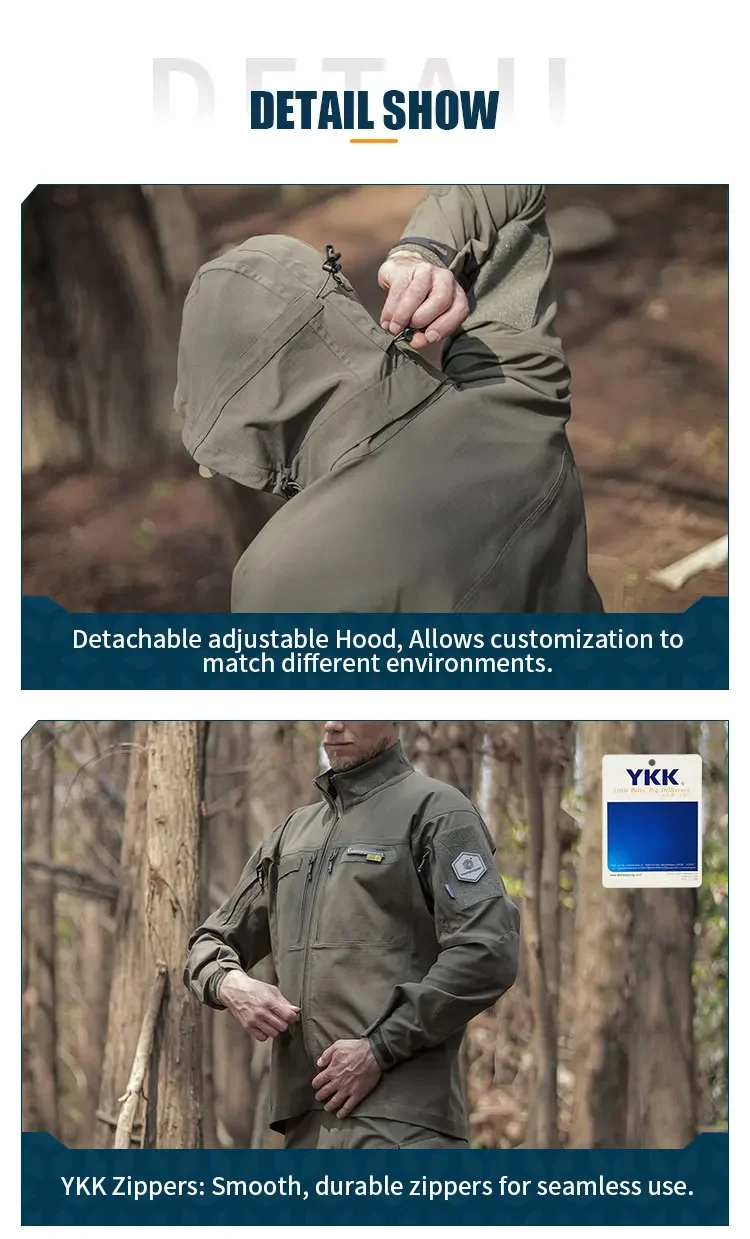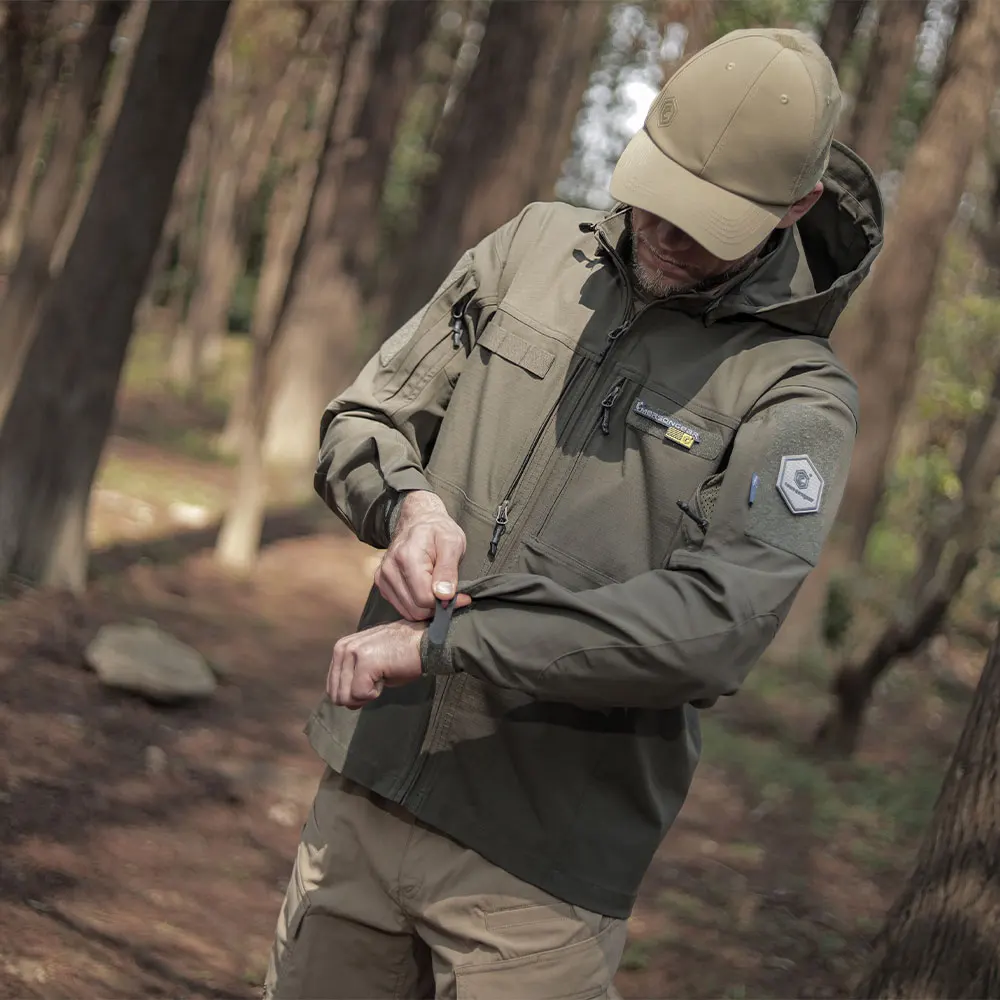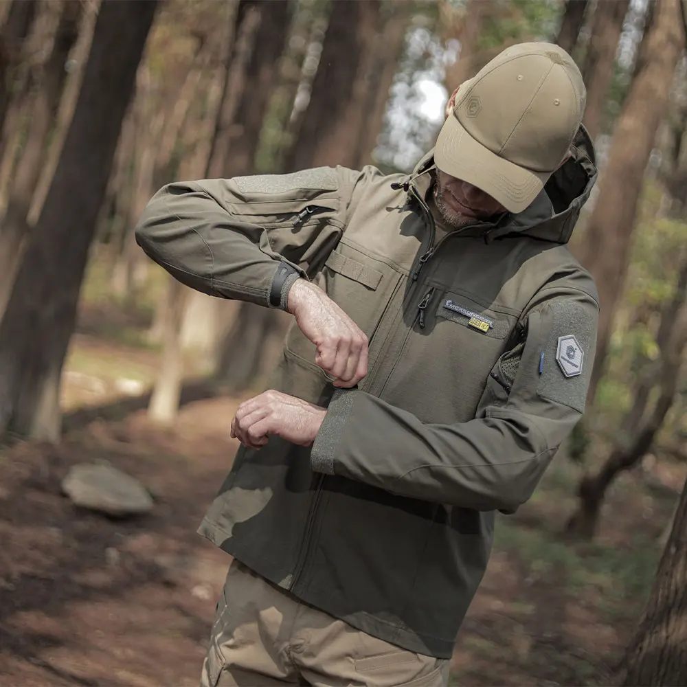 Functie: Ergonomische snit / Tefloncoating / Kras- en slijtvast / Horizontale stretch / Afneembare capuchon / Verstelbare manchetten / Molle-ontwerp op de voorborst