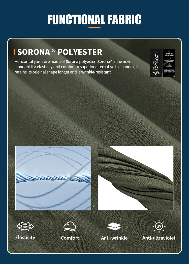Materiaal: De horizontaal geweven stof maakt gebruik van Sorona® polyester, dat een nieuwe standaard zet voor elasticiteit en comfort.Als superieur alternatief voor spandex behoudt het zijn oorspronkelijke vorm langer, is het kreukbestendig en verbetert het de hittebestendigheid, UV-bescherming en chloorbestendigheid.Dit maakt het ideaal voor stretchkleding zonder spandex, waardoor vocht tijdens trainingen effectief wordt beheerd en zweet minder opvalt.