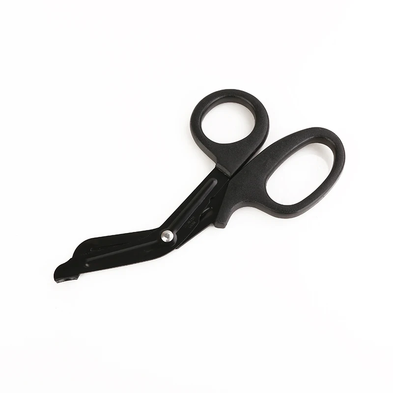 The Emerongear tactical medical scissors are made of steel as the main material of the blade, and the handle position is made of high-quality engineering plastics. They have excellent performance in high heat and cold environments, without cracking or embrittlement. In terms of the design of scissors, the elbow used for medical scissors is used to enable the cutting path to reach the working position at more angles during use, and at the same time, the wound is moderately protected.