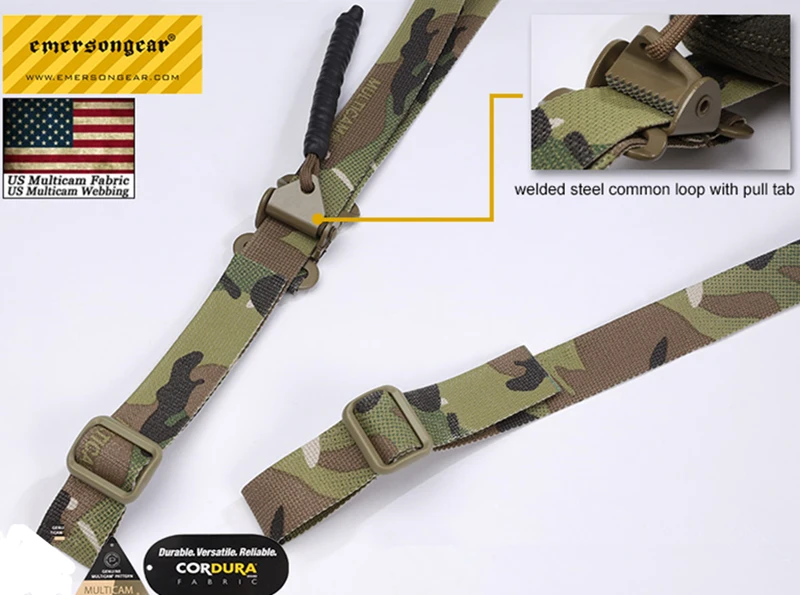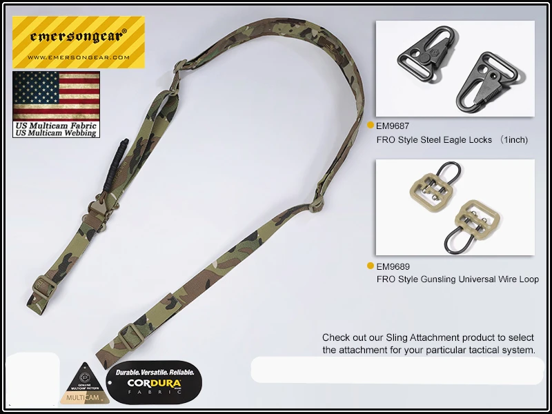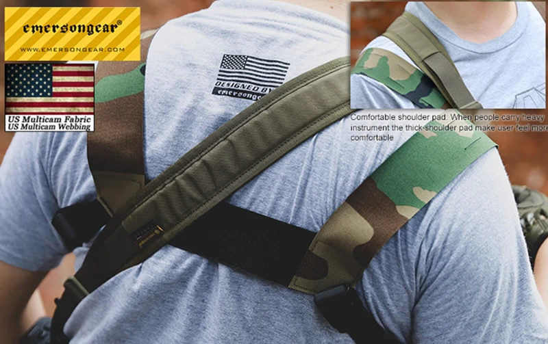 La correa de ajuste rápido Emersongear FRO Style de 2 puntos se puede combinar libremente con diferentes ganchos delanteros y traseros. Además, este cinturón puede adaptarse a diferentes tipos de equipos. No solo eso, este CINTURÓN está equipado con una hebilla de cierre intensificada, que aprieta el cuerpo al transportar. Además, cuando se requiere una respuesta rápida, el estado de alerta se puede lograr rápidamente agarrando el mango de la hebilla de cierre mientras se empuja el instrumento, entonces puede alcanzar rápidamente el estado de alerta. El mango abandona la estructura inherente de la eslinga única anterior y la manga antideslizante, y se actualiza a un mango tridimensional tejido con paracord, que es más fácil de agarrar y usar cuando se usan guantes tácticos, mejorando efectivamente la eficiencia. El cabestrillo está equipado con hombreras gruesas que pueden ayudar a las personas a sentirse cómodas cuando transportan instrumentos pesados. Esta producción fue hecha de materiales US MC. Las características son resistencia al desgarro, resistente al desgaste, repelente al agua y resistencia al aceite.