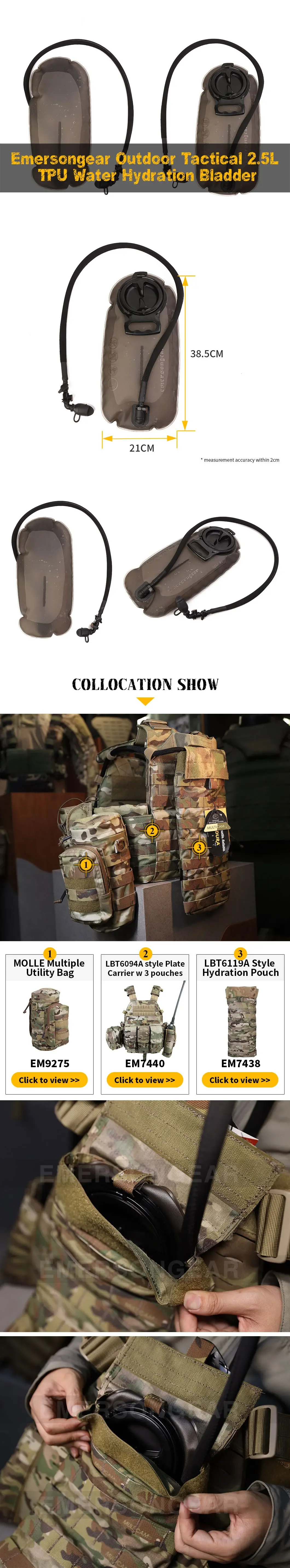 Emersongear táctico TPU 2,5L vejiga de hidratación bolsa de agua Milsim caza senderismo deporte al aire libre combate portátil marrón EM5825