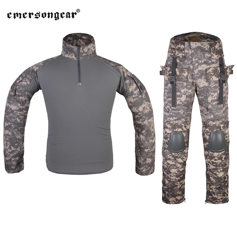 Emersongear ACU Tactical Suit w/Knee Pad Elbow Pads Combat Shirts Pants Duty Cargo Trouser Airsoft Hunting Shooting Hiking EM2727