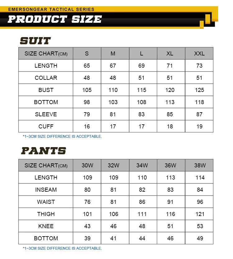El paquete incluye: 1 traje de combate táctico Emersongear Gen2