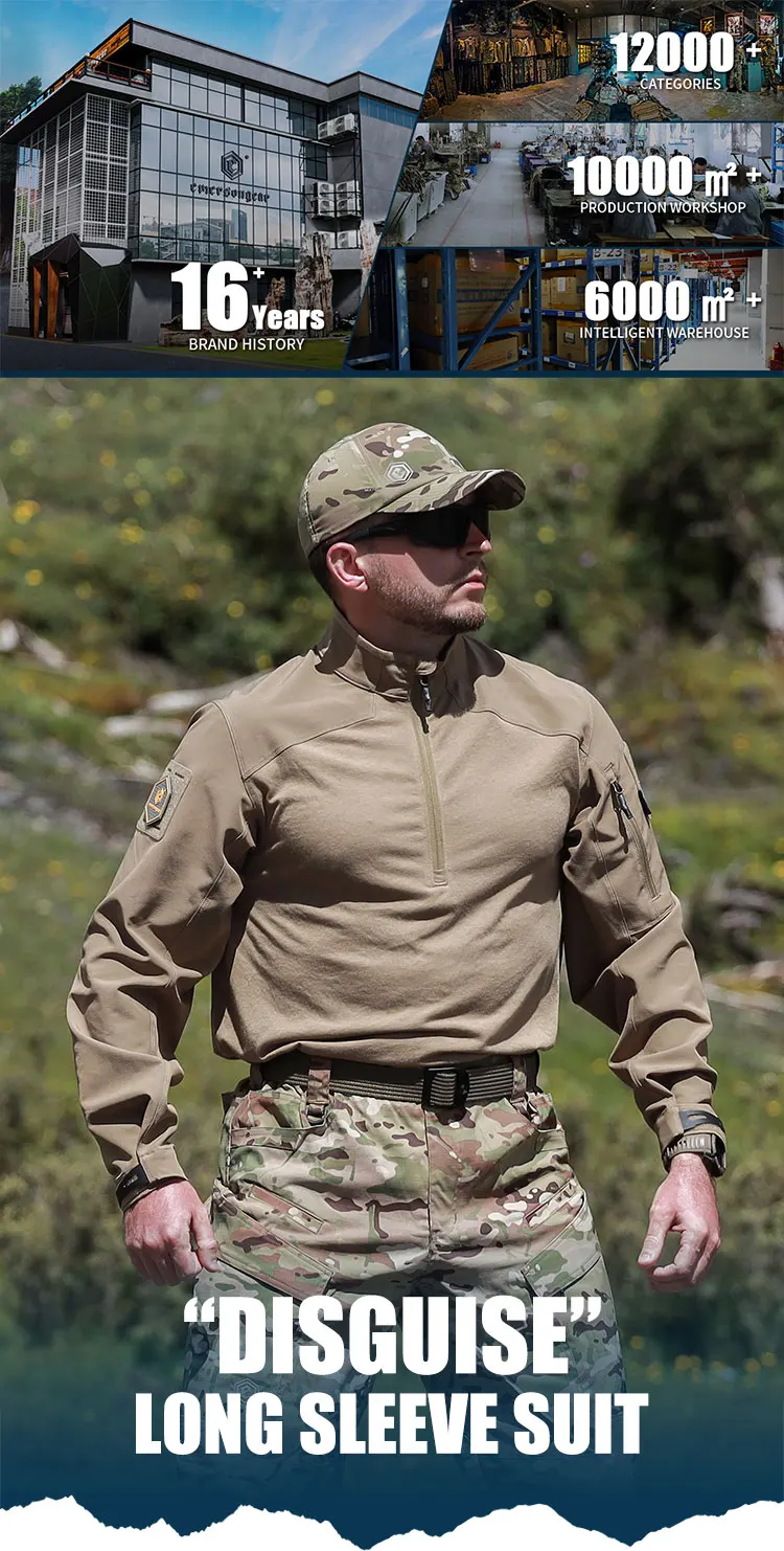 Emersongear Etiqueta azul “Disfraz” Trajes de manga larga Camisas de combate Tops tácticos Camisa de entrenamiento Camisetas Camiseta de camping Senderismo Caza Transpirable al aire libre EM9752