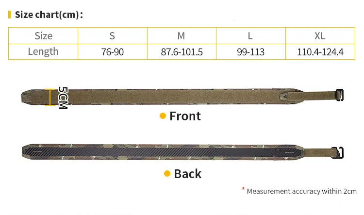 El cinturón se divide en 4 tamaños correspondientes a: S(30-35,5IN) \ M(34.5-40IN) \ L(39-44,5IN) \ XL(43,5-49IN), el cinturón se puede ajustar en dos dimensiones para adaptarse a usuarios con diferentes tamaños de cintura y mantener un pequeño cinturón después del ajuste.