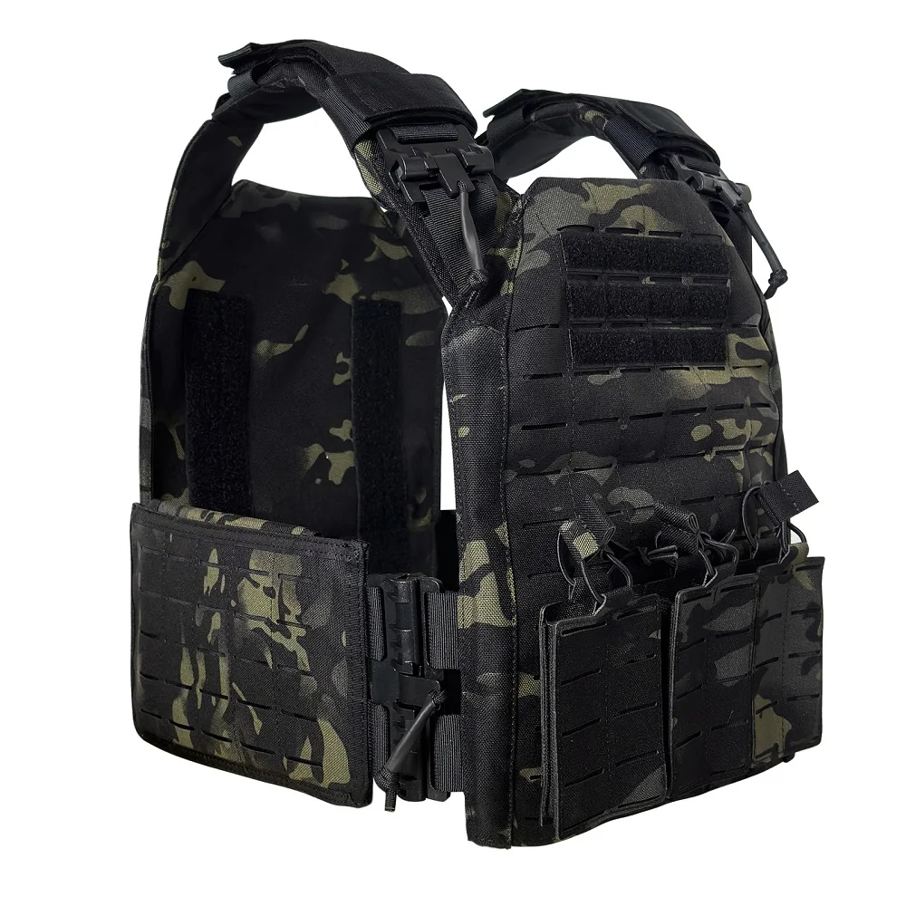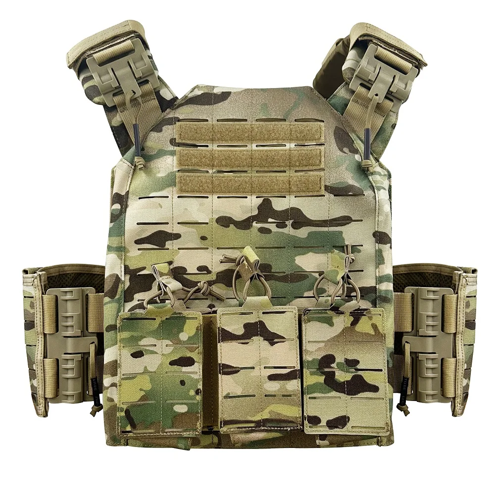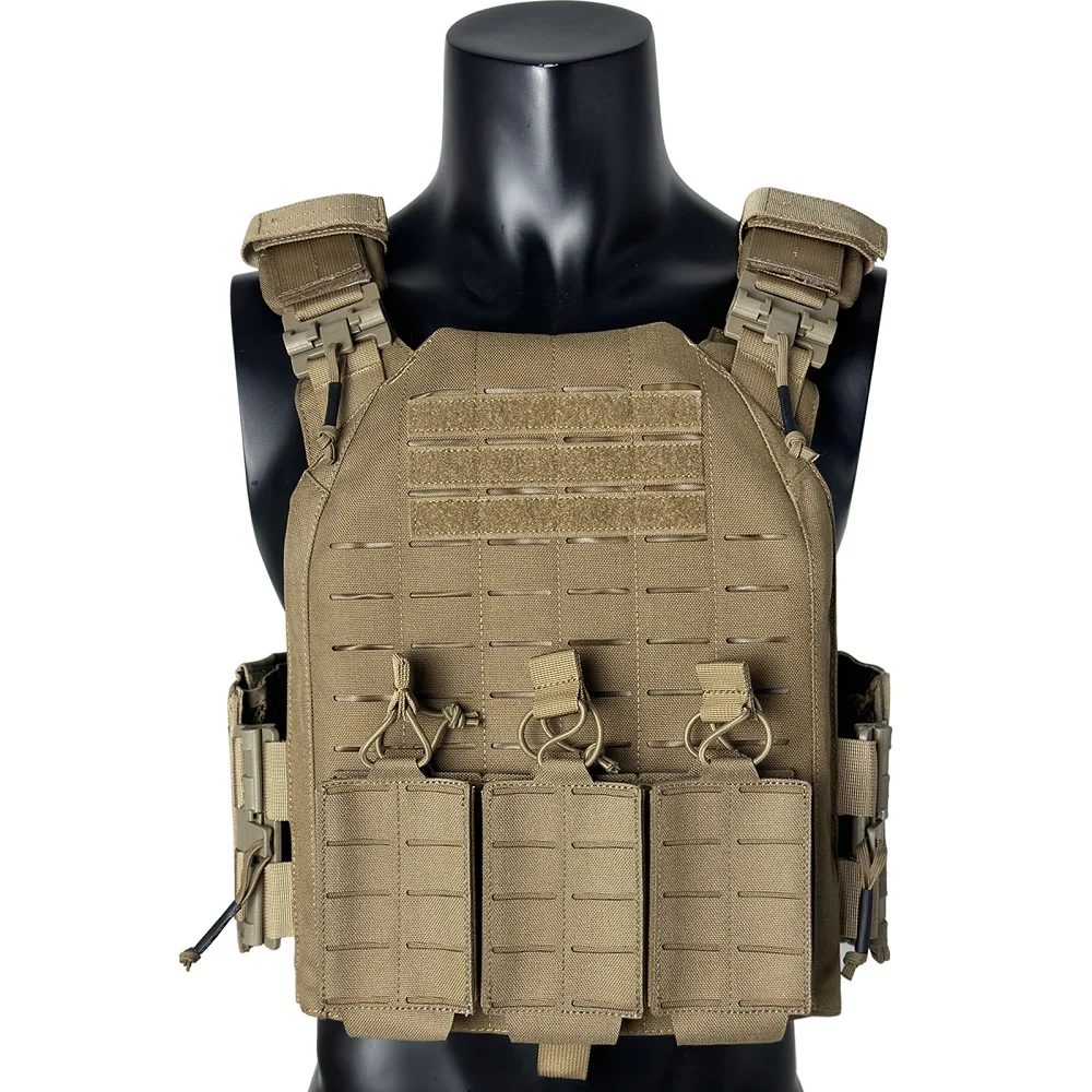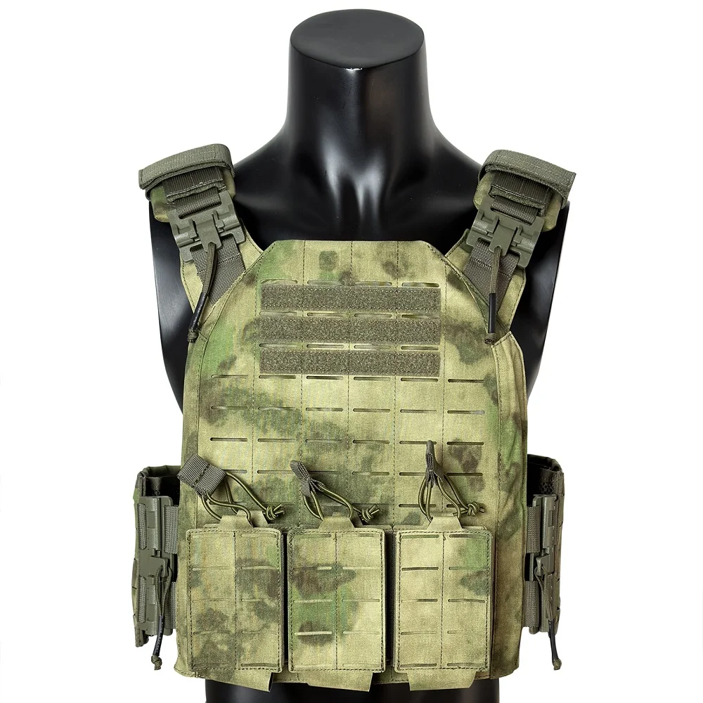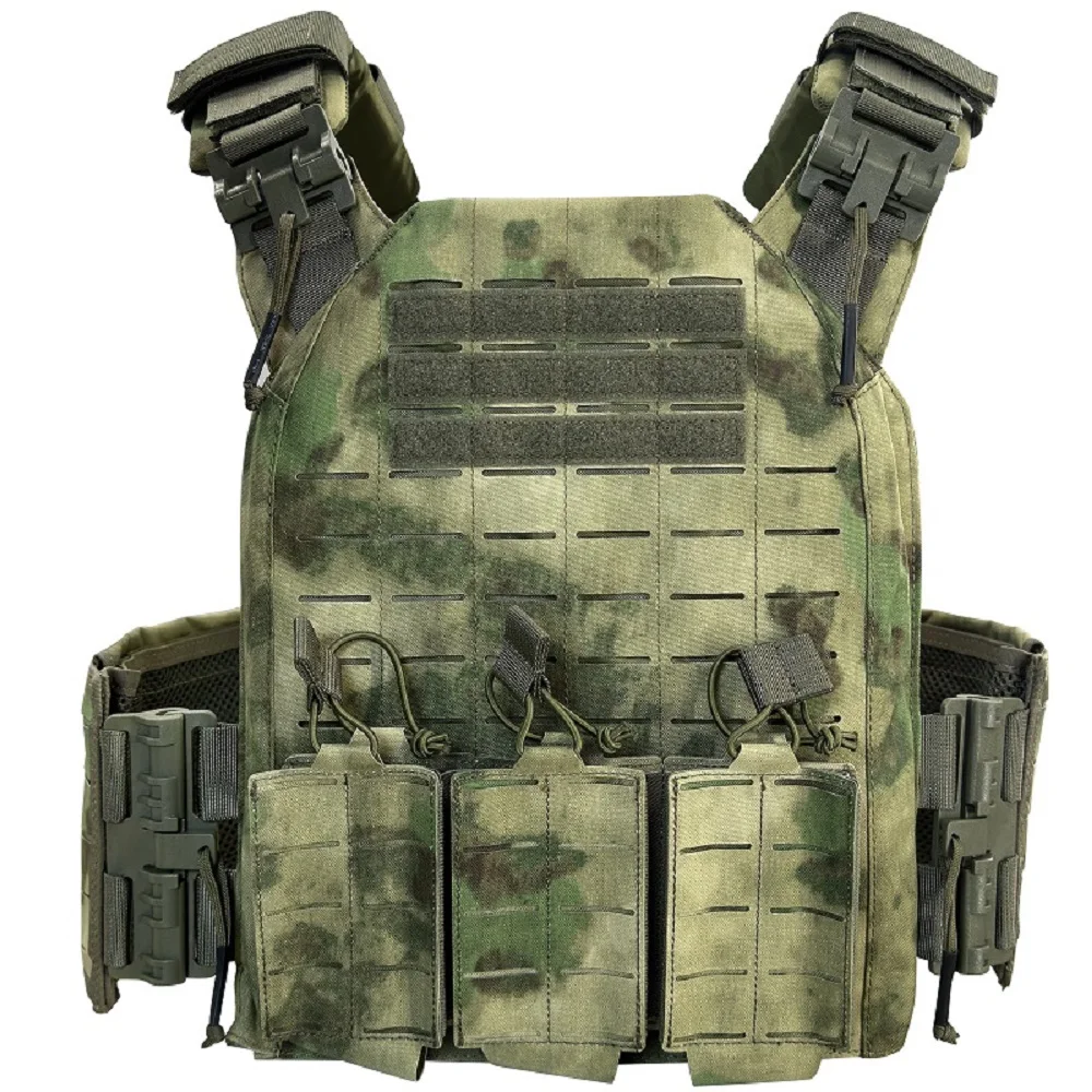 Proceso de corte por láser, lleno de molle en el chaleco para colocar tipos de bolsas.