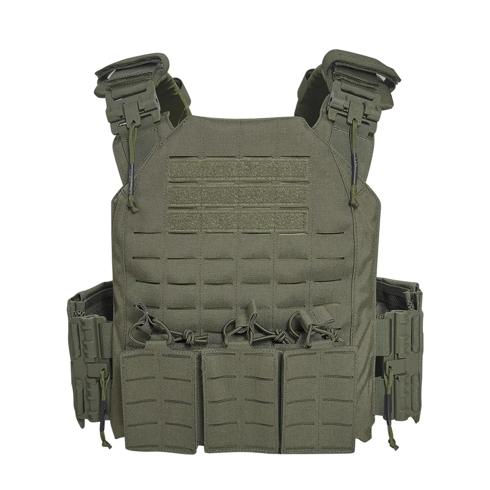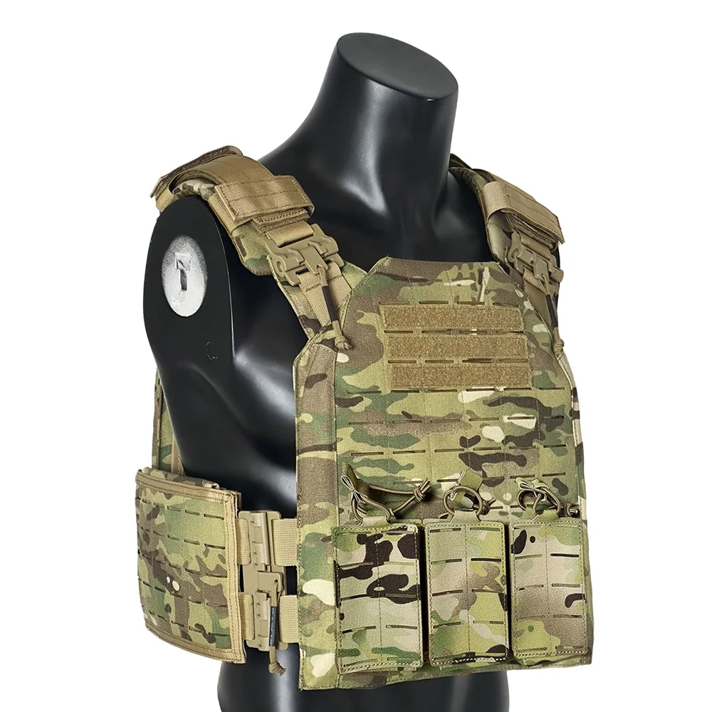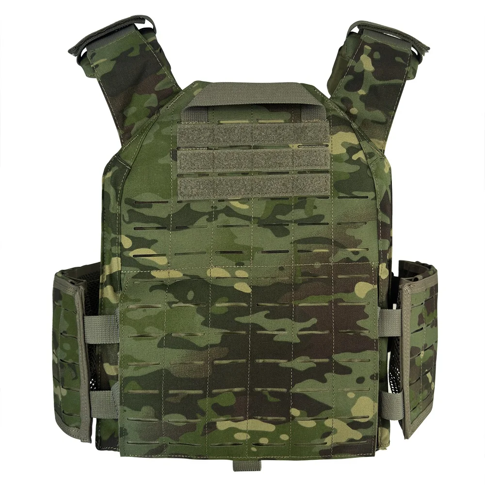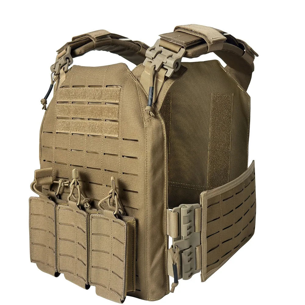 Proceso de corte por láser, lleno de molle en el chaleco para colocar tipos de bolsas.
