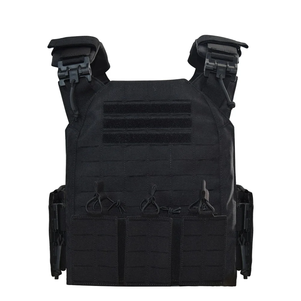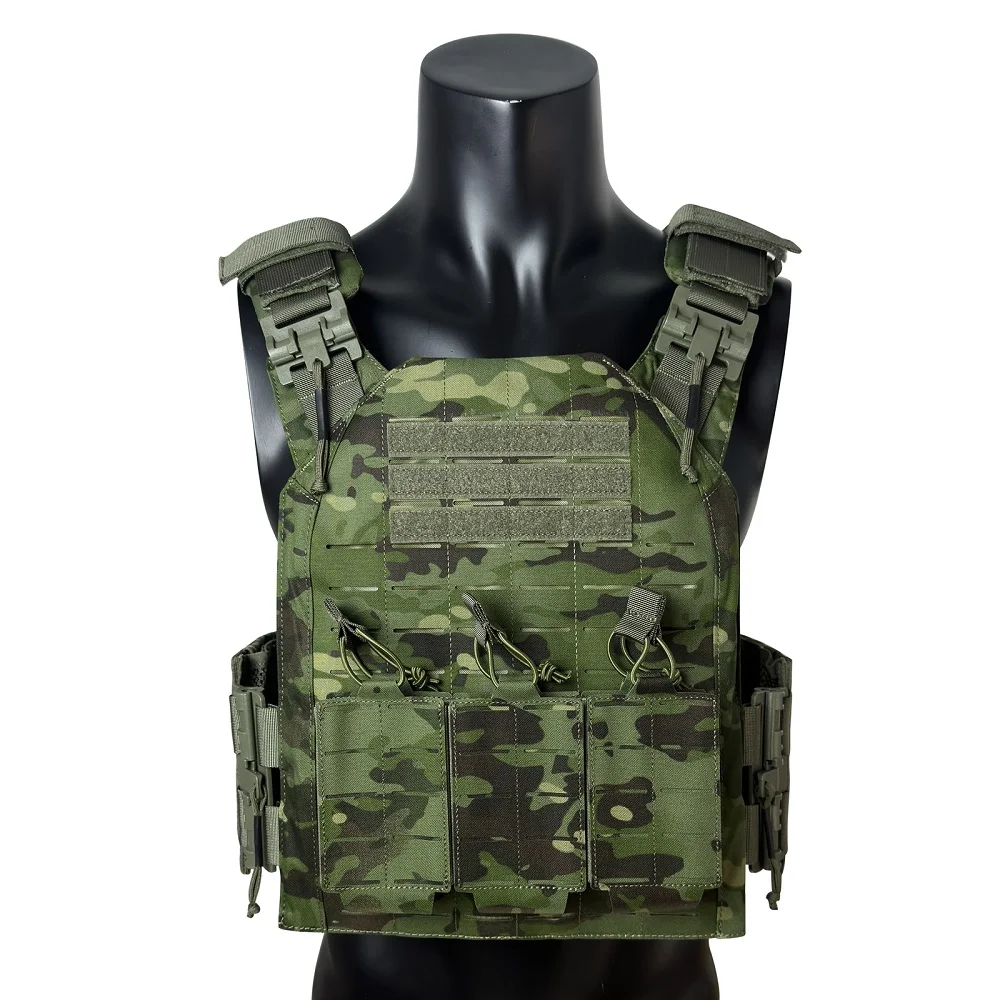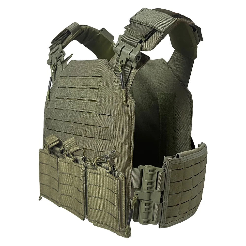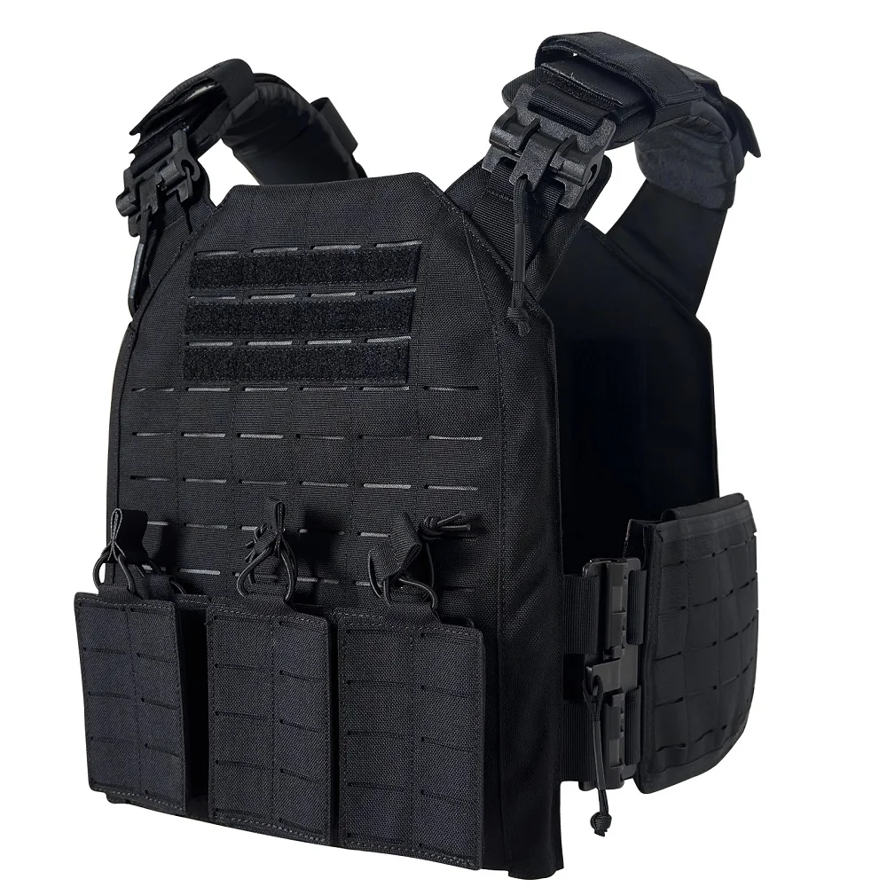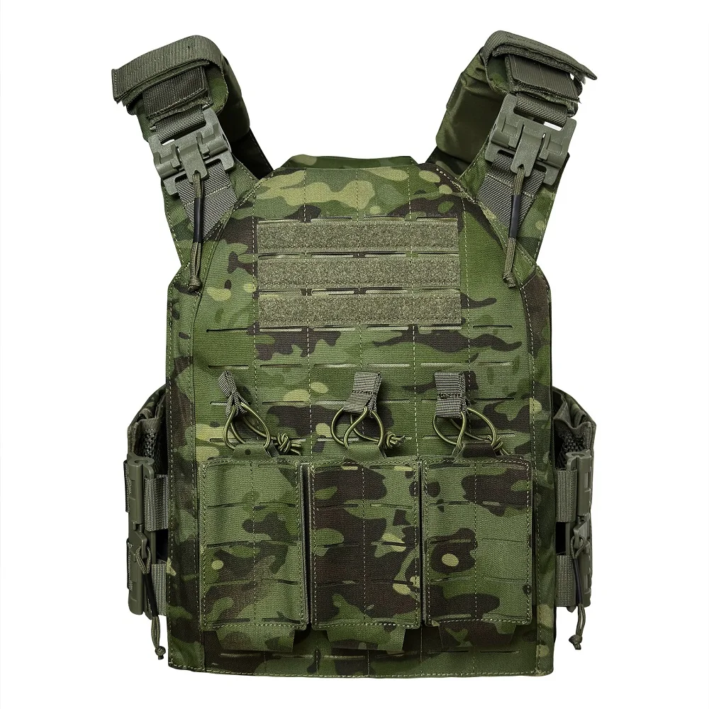 Proceso de corte por láser, lleno de molle en el chaleco para colocar tipos de bolsas.