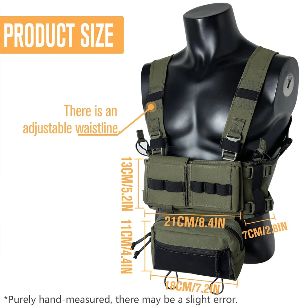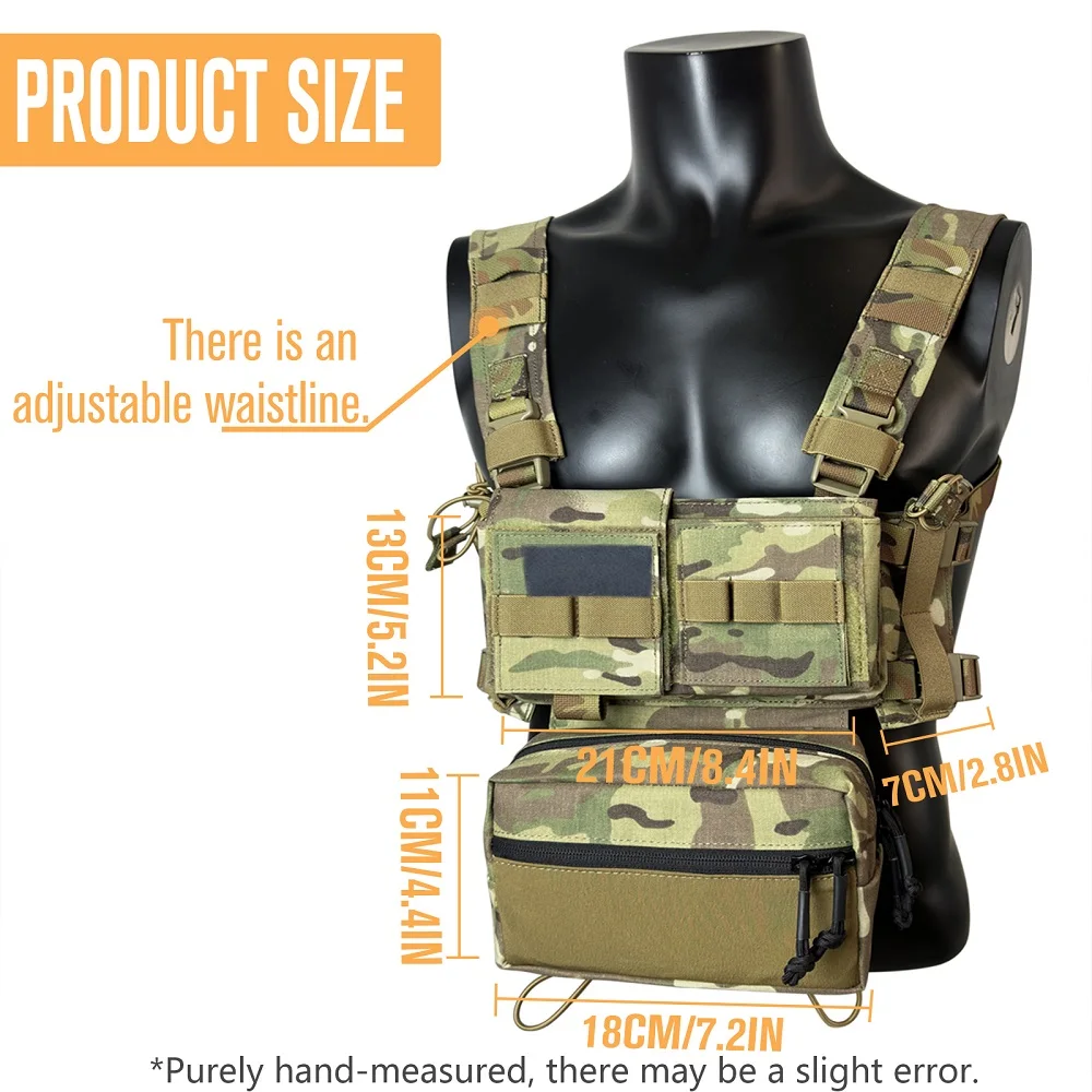 [Size ]: waist size is about 75~125cm can be adjusted, it can be suitable for all body shapes! All plates of the chest rig are removable, Can Matching Tactical vest together Use