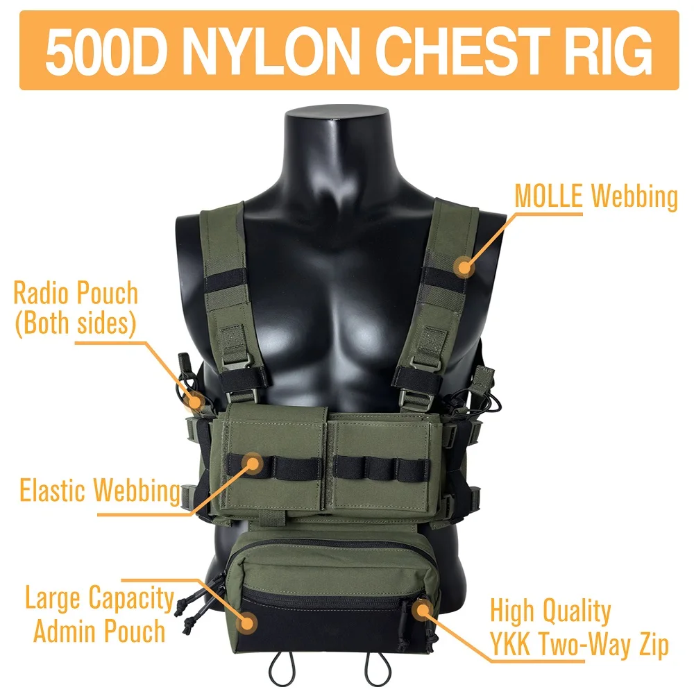 [Lightweight Chest Mount] : that can carry not only AK magazines, but also MP5 long magazines. It can carry large-capacity equipment such as 8 M4 magazines (5.56 magazines), pistol magazines, etc. The multi-purpose YKK zipper hanger bag which has more storage capacity than it looks. Abdominal bag Grid Storage Take More convenient.
