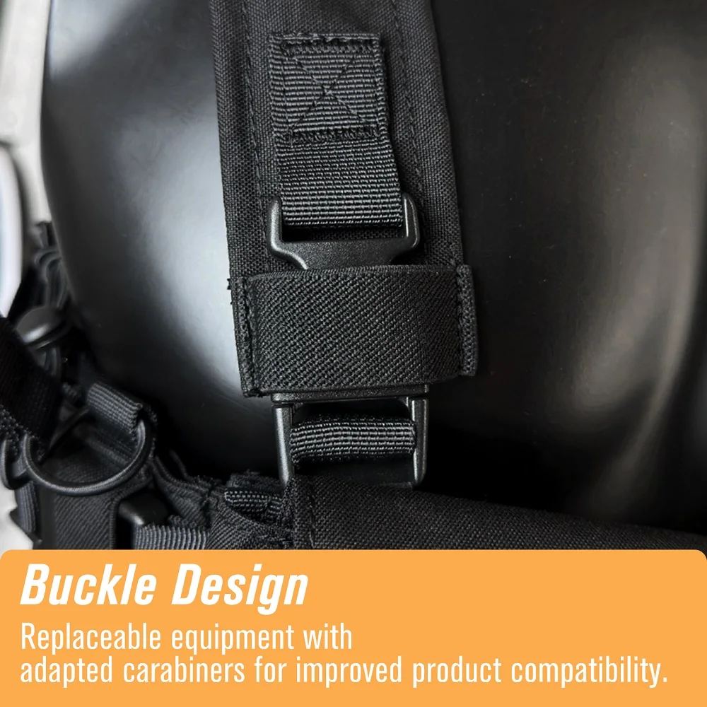 [Adjustable Design] :The waist and shoulder straps are adjustable to fit any body type! The buckle in the abdomen area makes putting on and taking off the chest rig very quick and easy. You can enjoy the survival game. This chest rig is equipped with a Molle system on the shoulder straps and side pockets, allowing it to be used in combination with other gear such as bags and magazine pouches. Since it is a Molle system, the placement of the magazine pouch can be changed freely.