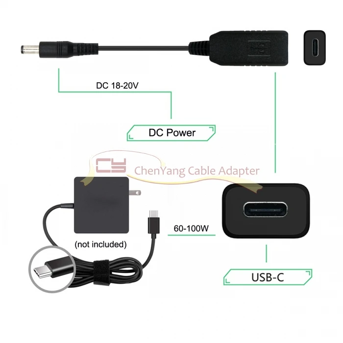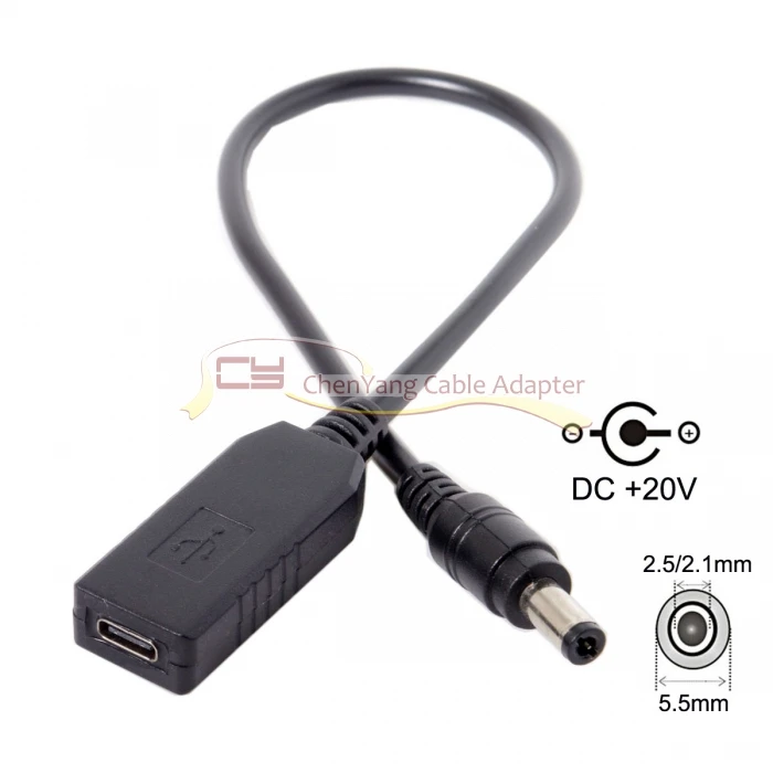 Cable de Carga USB 3,1 Tipo C a DC 20V 5,5 2,5mm y 2,1mm, Enchufe de Alimentación PD, Emulador Ficticio para Ordenador Portátil