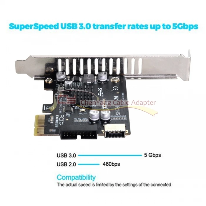 Enchufe de panel frontal USB 3,1 tipo E de 5Gbps y adaptador USB 2,0 a PCI-E 1X Express Card VL805 para placa base