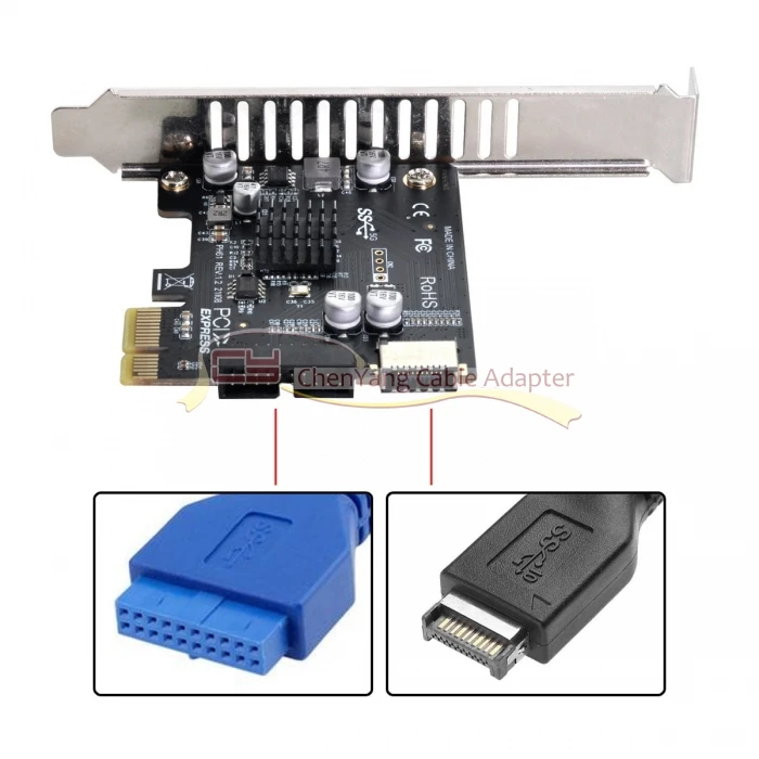 El adaptador es un convertidor para convertir el PCI-E 1x disponible de una placa base en un cabezal USB 3,1.