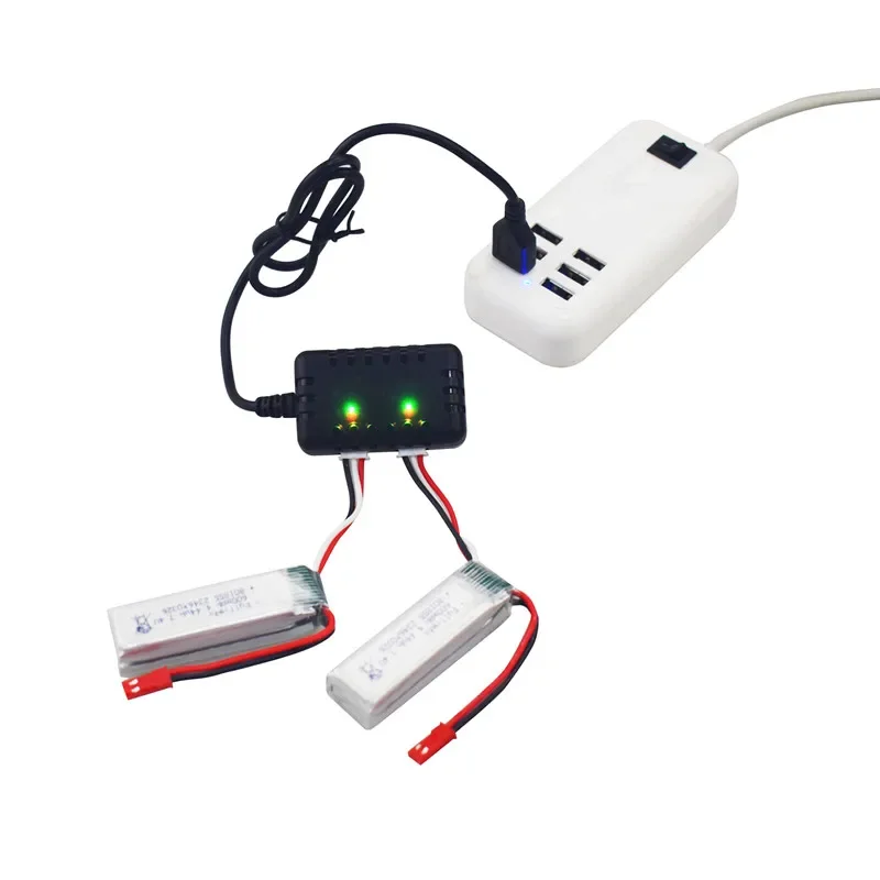 6 Indicador de carga: Puede cargar dos 7.Baterías de litio de 4 V simultáneamente, con control de canal independiente y configuración de protección contra sobrecarga/indicador LED (la luz verde parpadea durante la carga, permanece encendida durante mucho tiempo cuando está completamente cargada y deja de cargar automáticamente)
