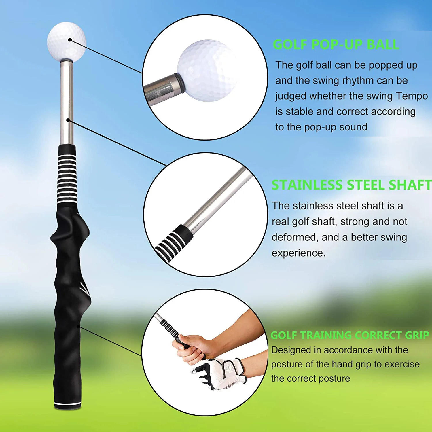 1.Perfecta herramienta de entrenamiento de swing y calentamiento.Es su herramienta definitiva para refinar el tempo de swing, mejorar el equilibrio y dominar la velocidad y la potencia.