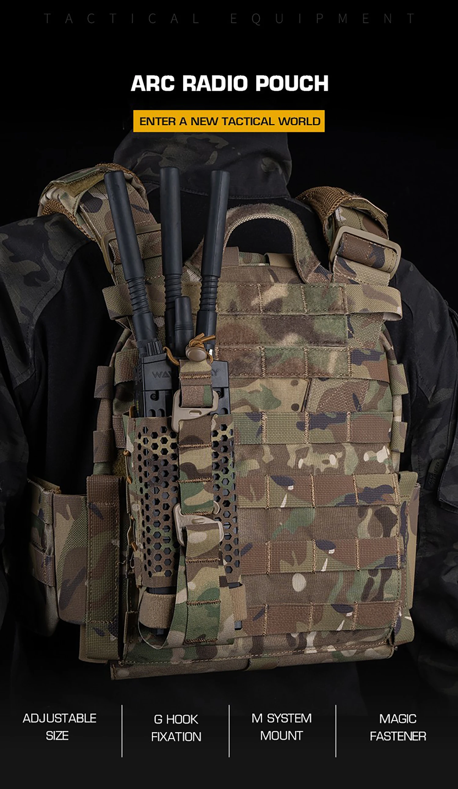 Equipo de engranaje táctico, accesorios portadores de placa, bolsa de Radio ARC Molle, funda de Radio