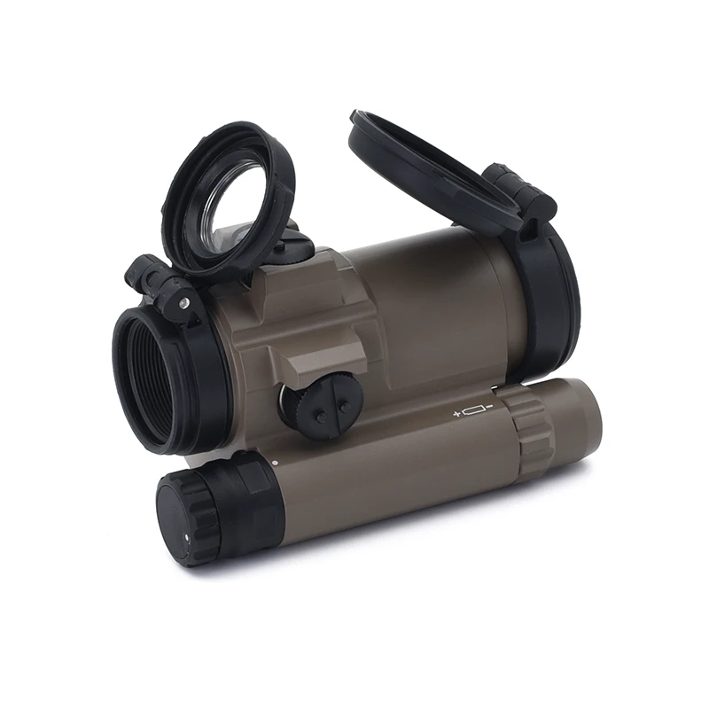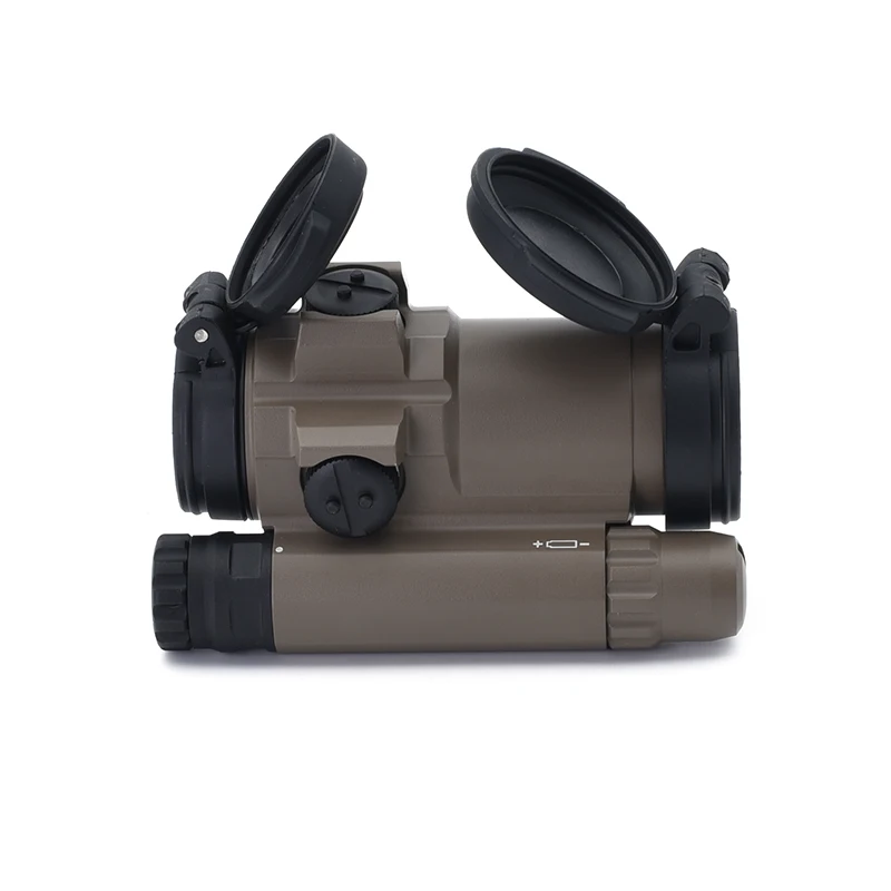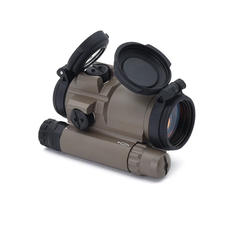--Cubiertas de lentes abatibles: la parte delantera es sólida y la parte trasera es transparente, lo que permite al usuario disparar con ambos ojos abiertos y tapas de lentes cerradas en una situación de emergencia.