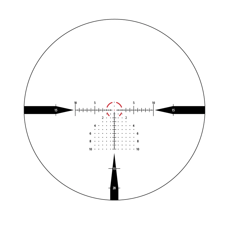 Rango de ajuste interno: E: 30 MRAD W: 30 MRAD
