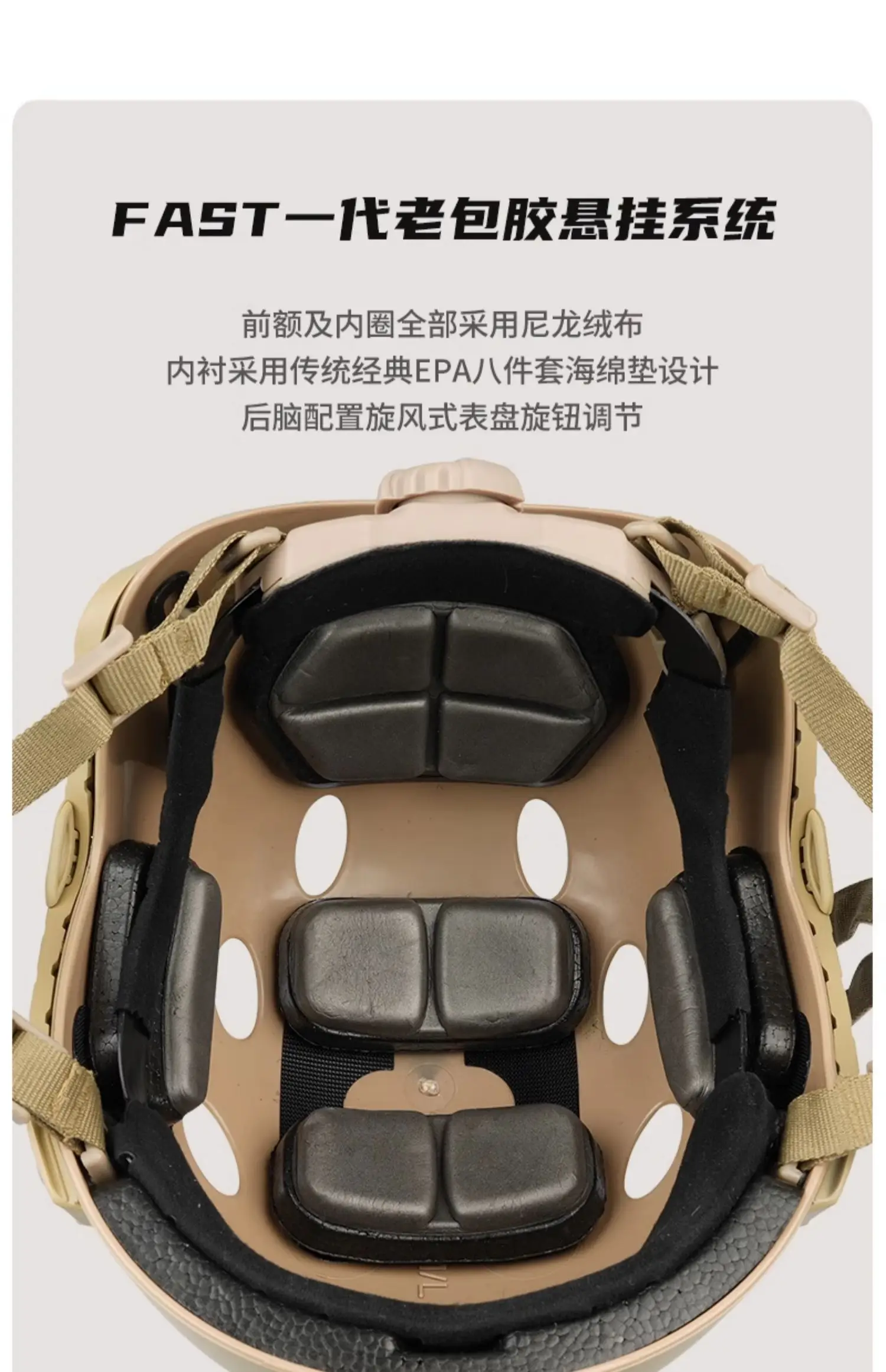 El diseño de velcro en la superficie del casco está completamente actualizado para satisfacer mejor las necesidades del entrenamiento de combate moderno.