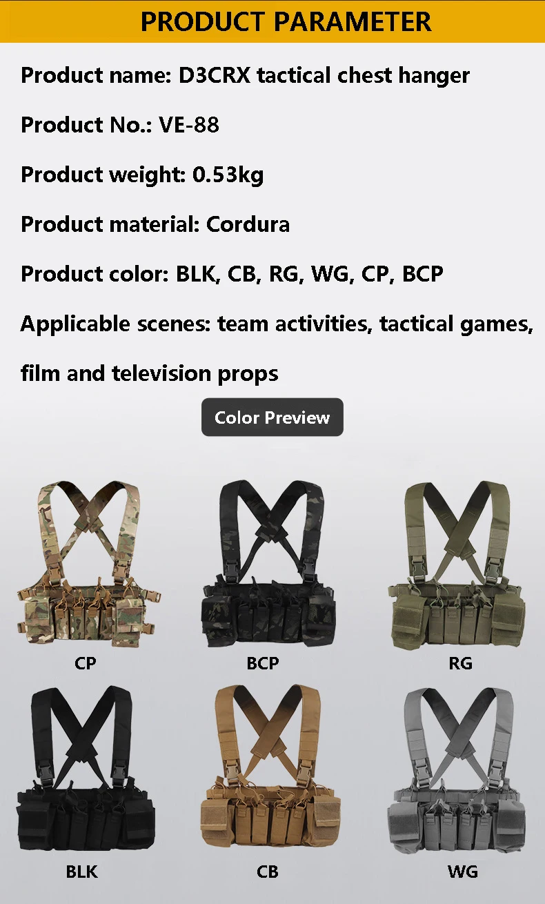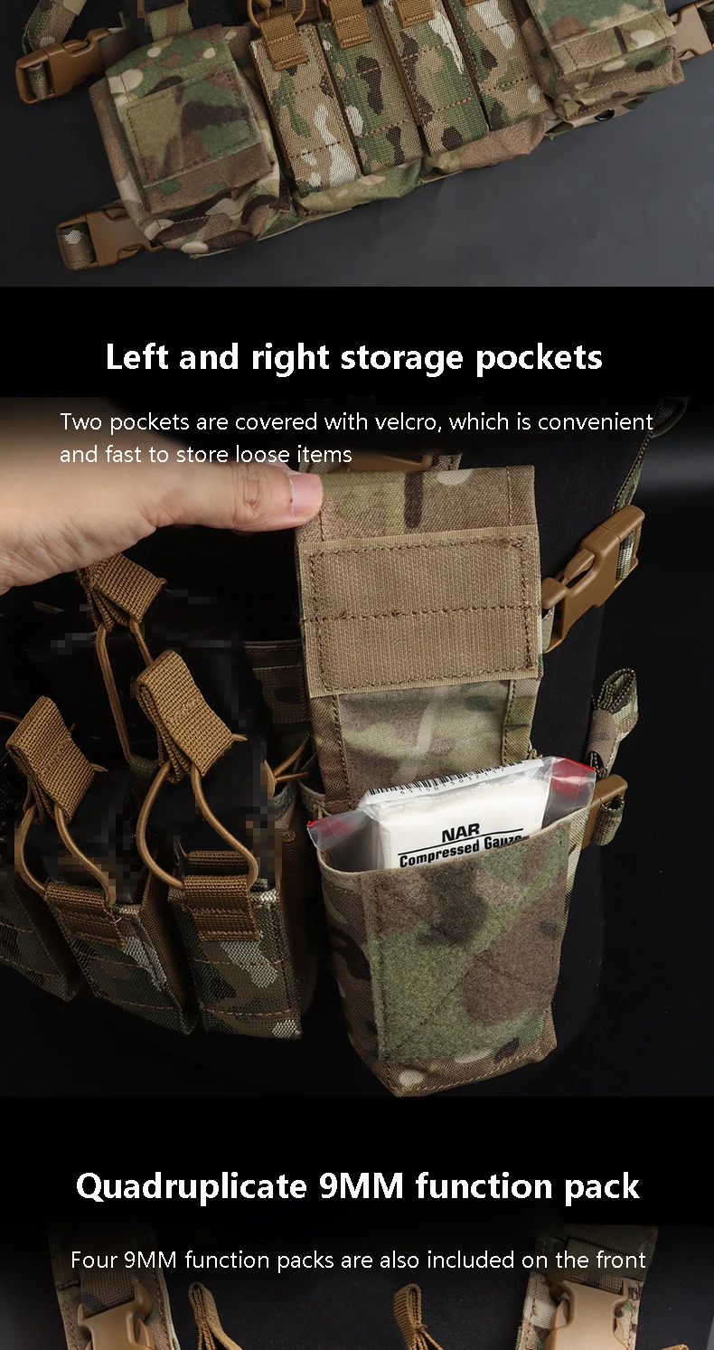 Equipo de pecho expandible multifuncional de camuflaje táctico D3CRX, chaleco con paquete de funciones, bolsa de almacenamiento, ligero